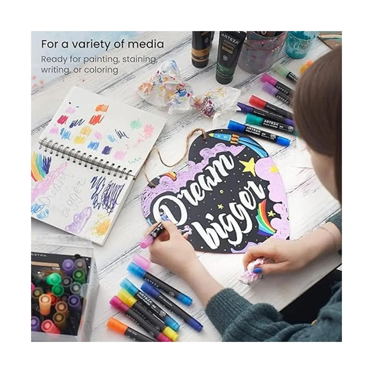 Fabricado por Arteza Artists: aquí en Arteza, nos apasiona crear productos que inspiren. Para nosotros, el arte es una expresión de la experiencia humana. Es por eso que trabajamos para que nuestros suministros de arte sean accesibles para todas las personas.