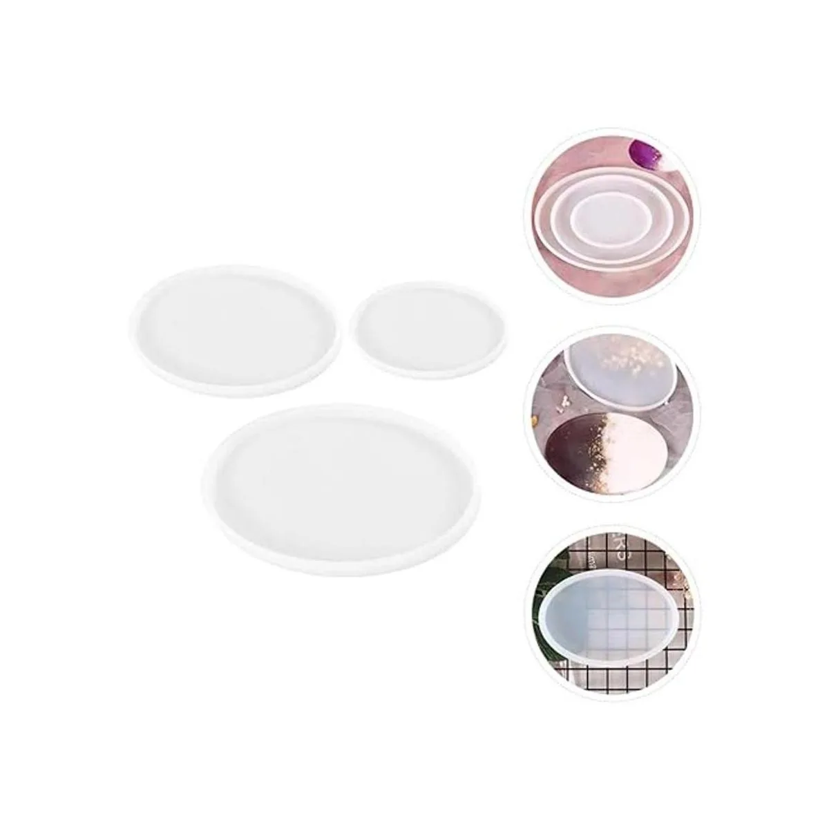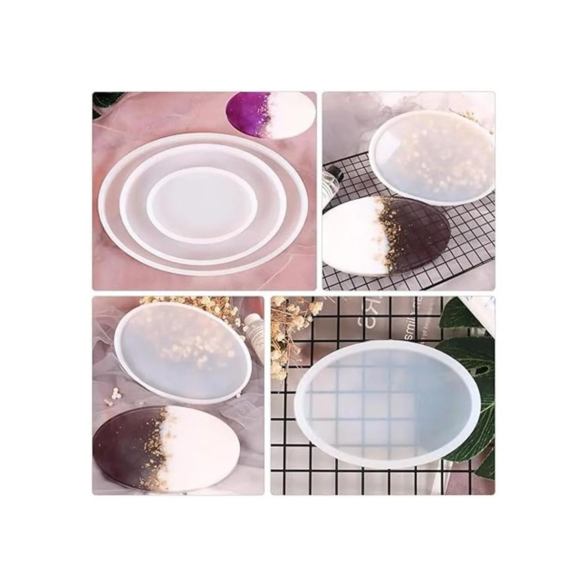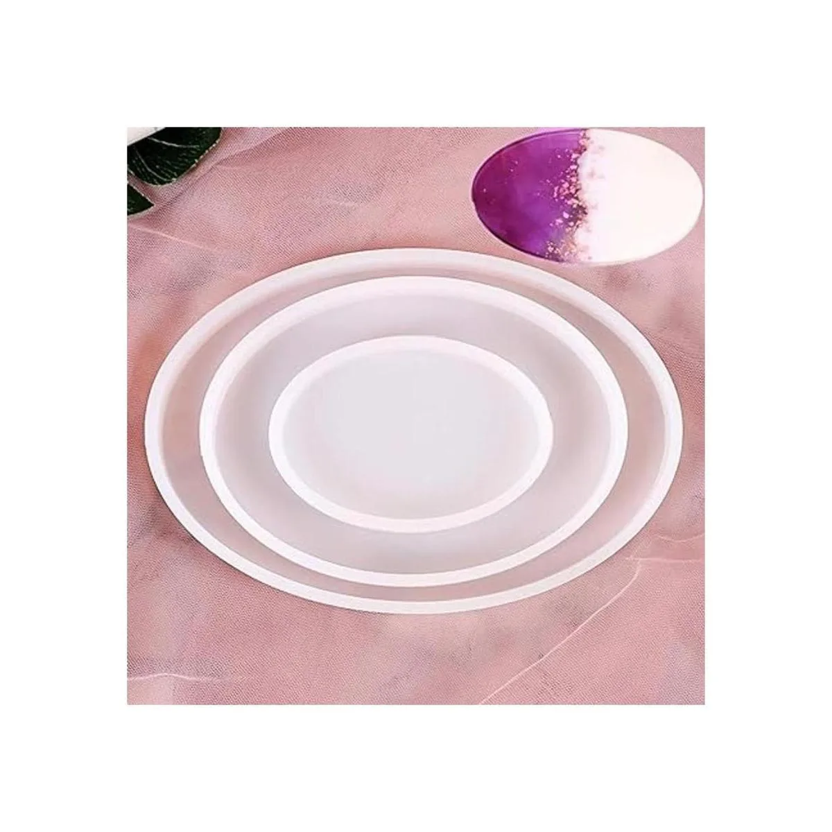 Artibetter Molde de resina de silicona para bandeja de resina 3 unidades, forma ovalada, cristal, epoxi, plato, posavasos y resina para decoración de escritorio