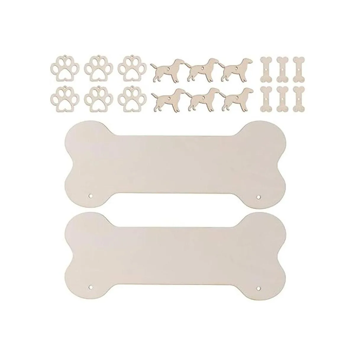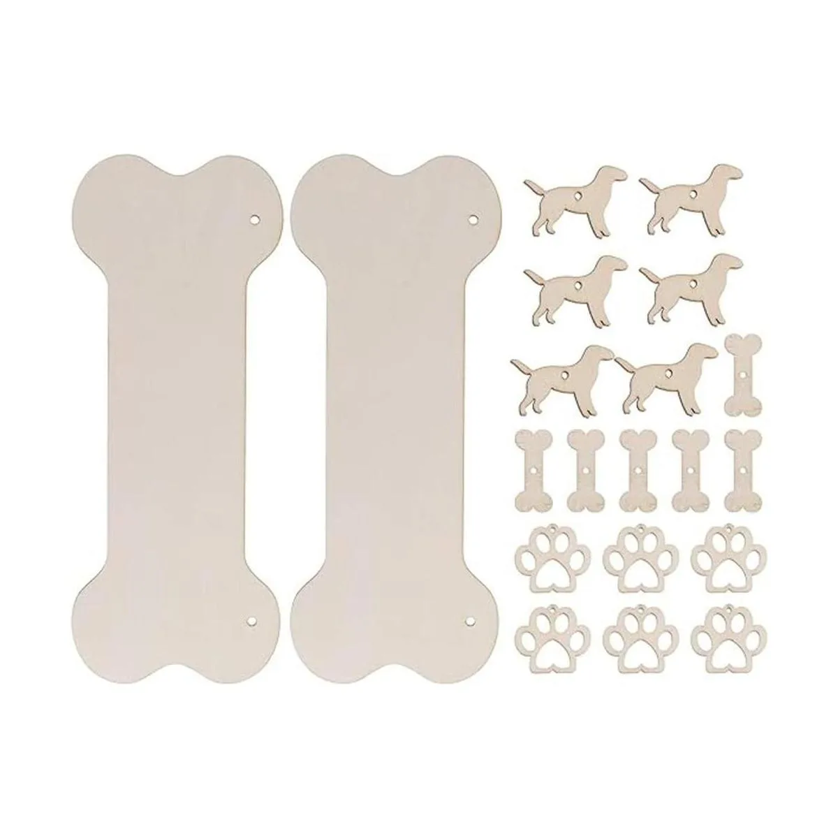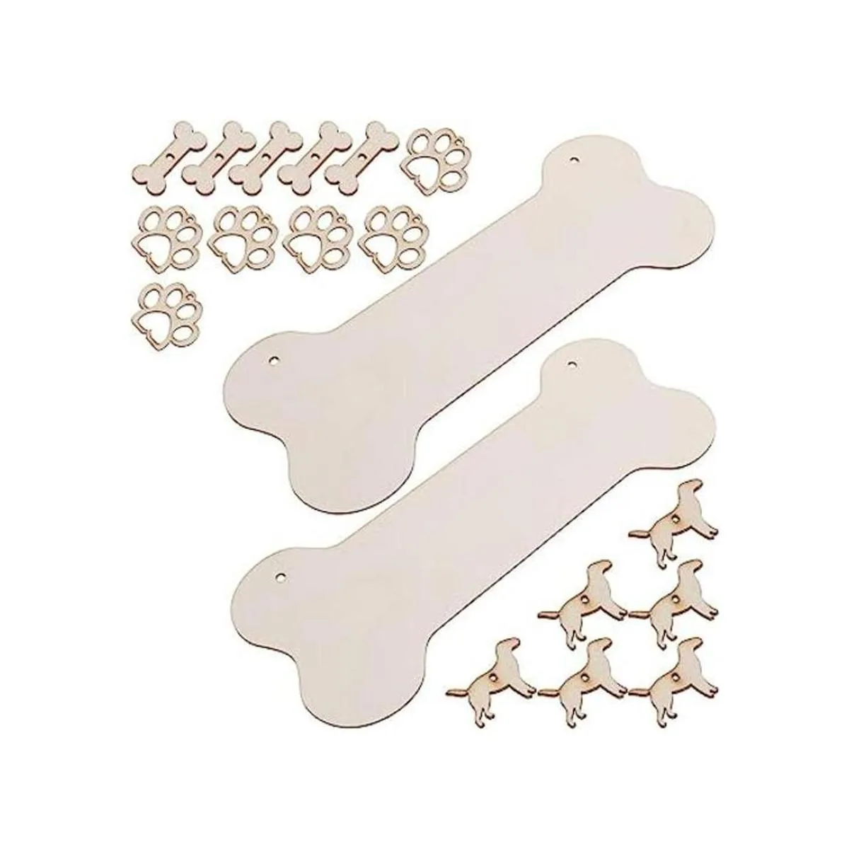 ARTIBETTER Placa de madera de hueso de perro en blanco con placa de madera sin terminar DIY Manualidades colgante para cachorro mascota casa puerta decoración de pared 20 piezas