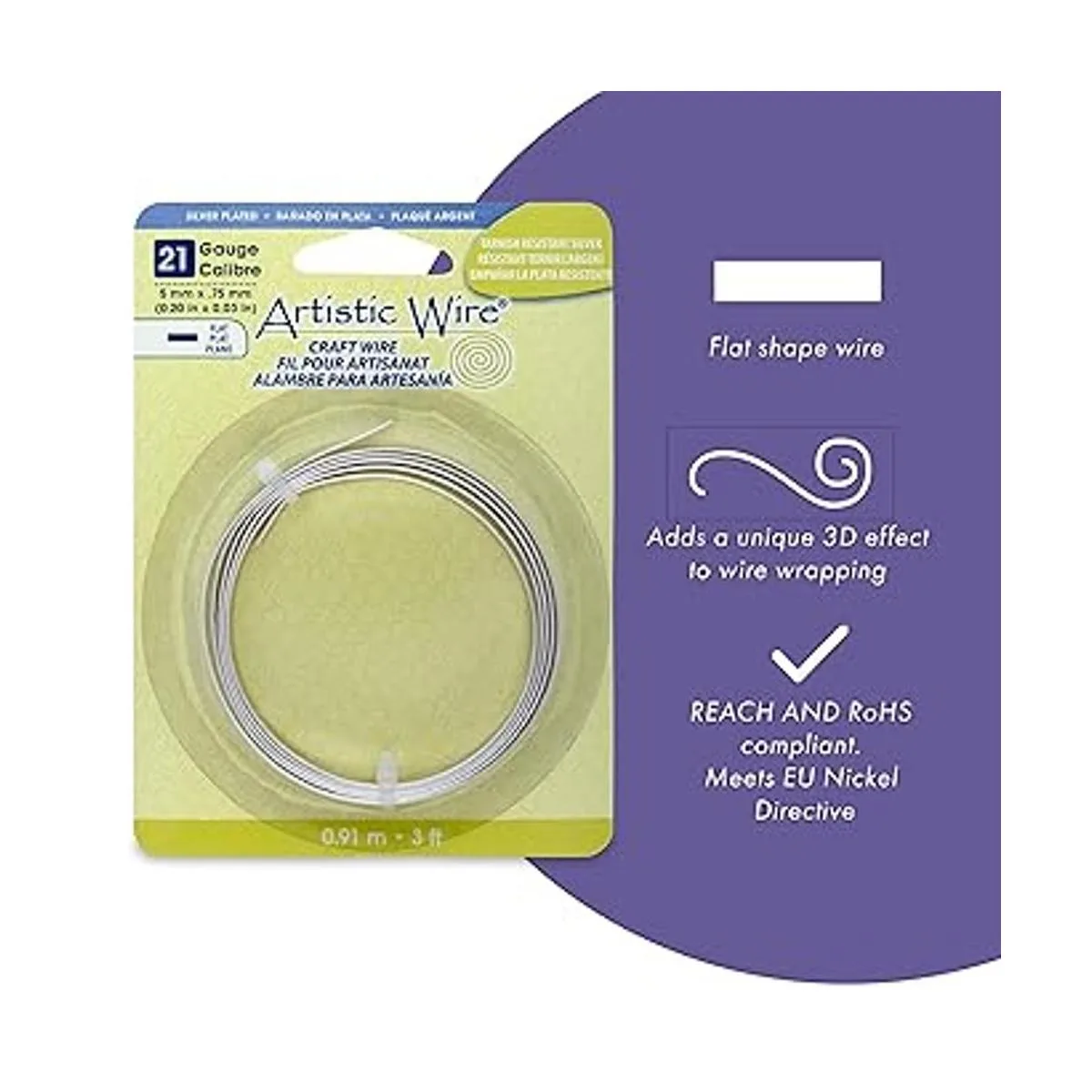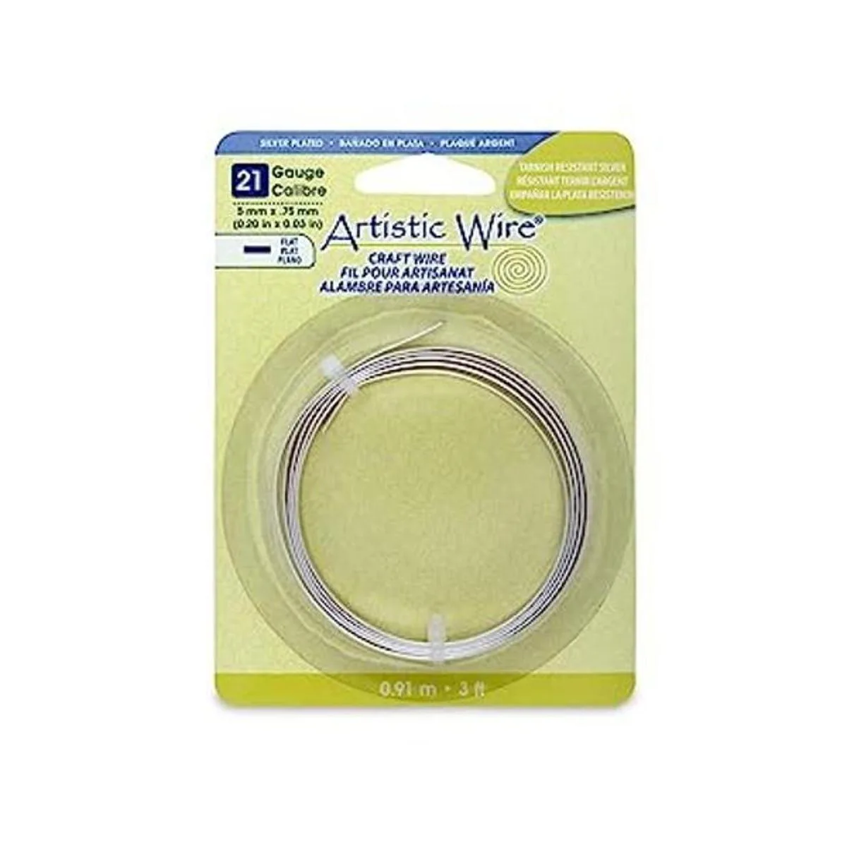 Artistic Wire, calibre 21, plano, 0.197 in x .75 mm 0.20 in x 0.03 in, plata resistente al deslustre, 3 ft 0.91 m, AWB21F5S1003
