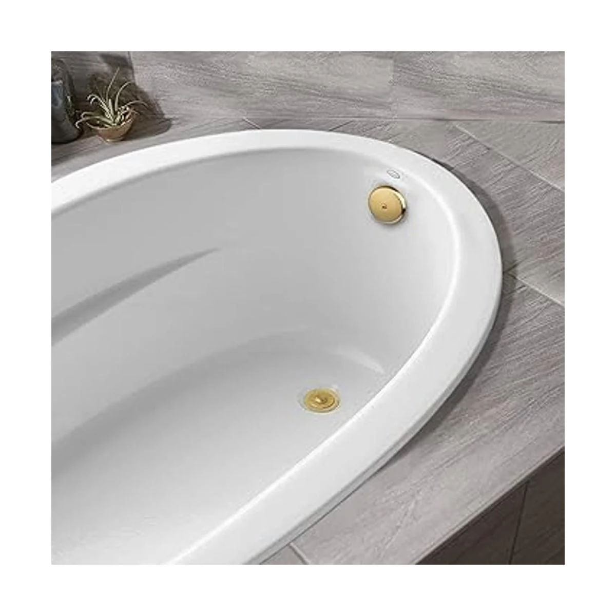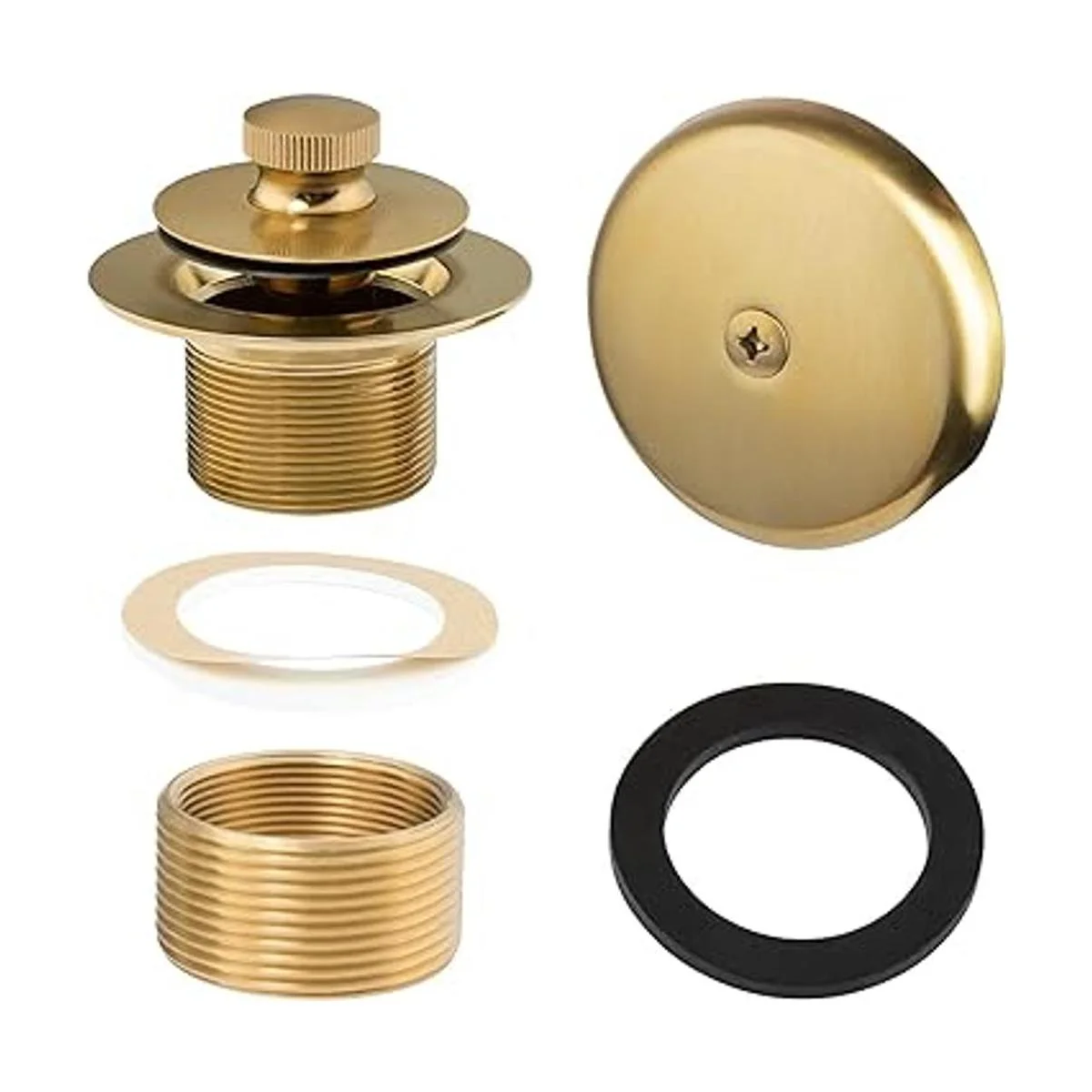 Artiwell Juego de molduras de bañera de empuje y bloqueo con placa frontal de desbordamiento de un solo orificio, kit de conversión de bañera con barra de conversión, rosca universal finagruesa, instalación sin masilla dorado tostado