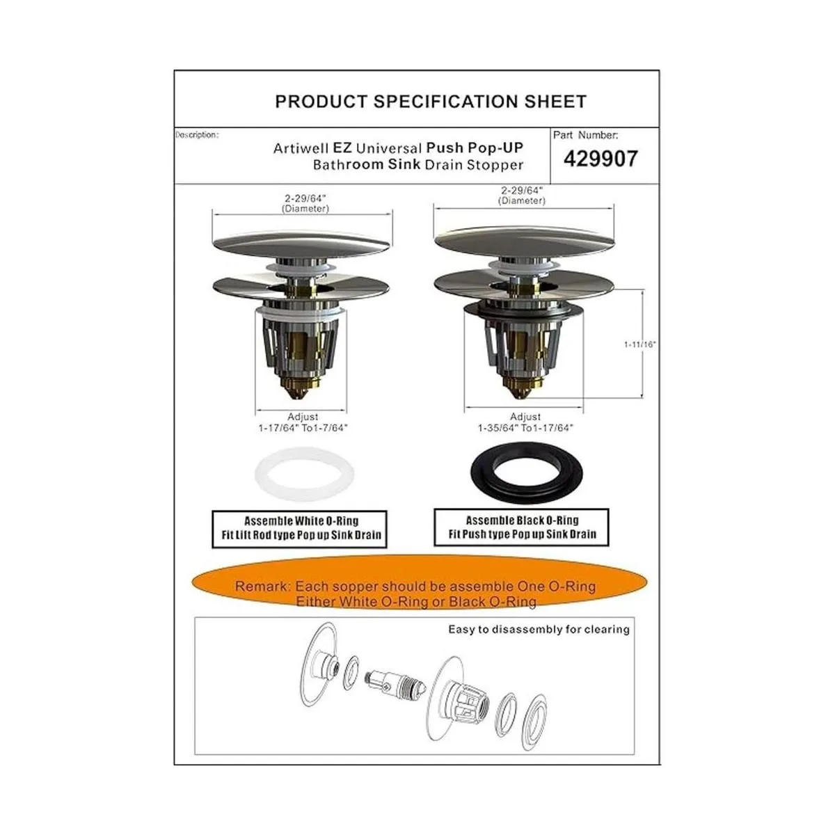 Material de alta calidad: tapón de fregadero de diseño mejorado Artiwell viene con latón macizo de alta calidad y acabado sin deslustre, proporciona resistencia y uso fiable.