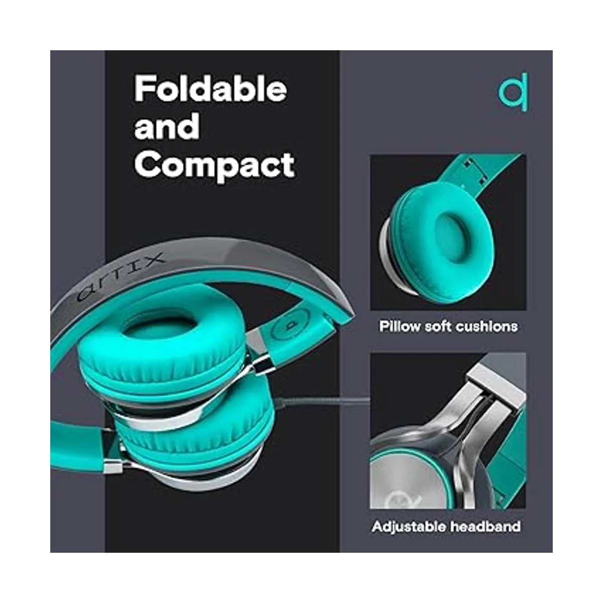 Artix CL750 audífonos plegables con aislamiento de sonido, supraaurales, con cable, con micrófono y control de volumen, audífonos estéreo con diadema ajustable, para computadora, portátil y teléfono celular
