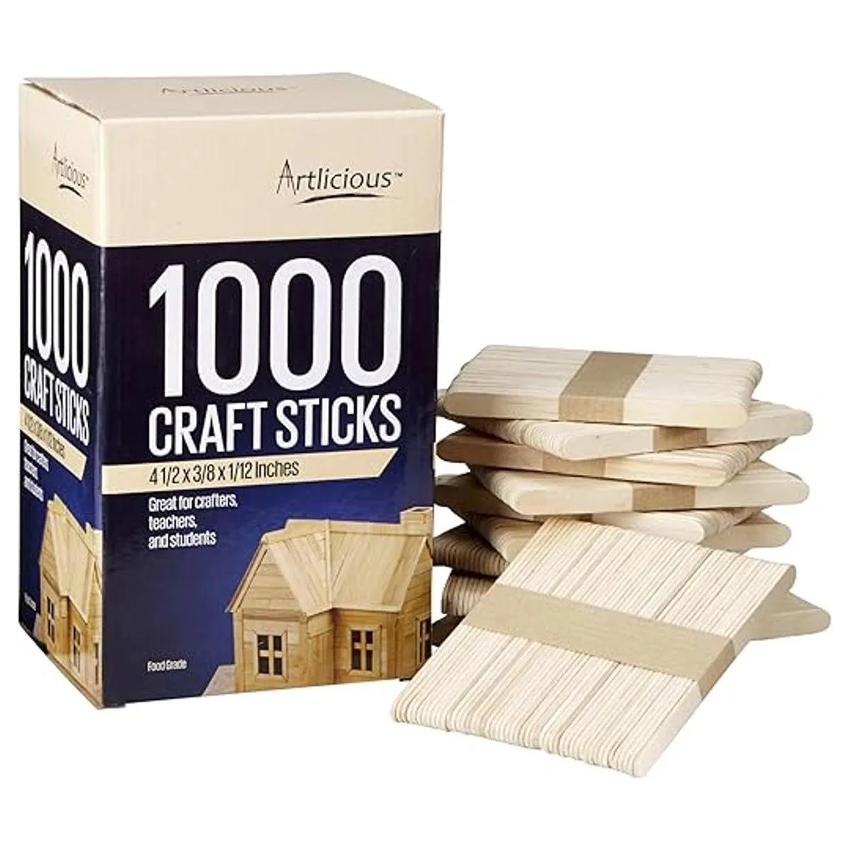Artlicious 1000 palitos de madera natural para manualidades, palitos de helado, clavija de madera, varillas de cera, depresores de lengua