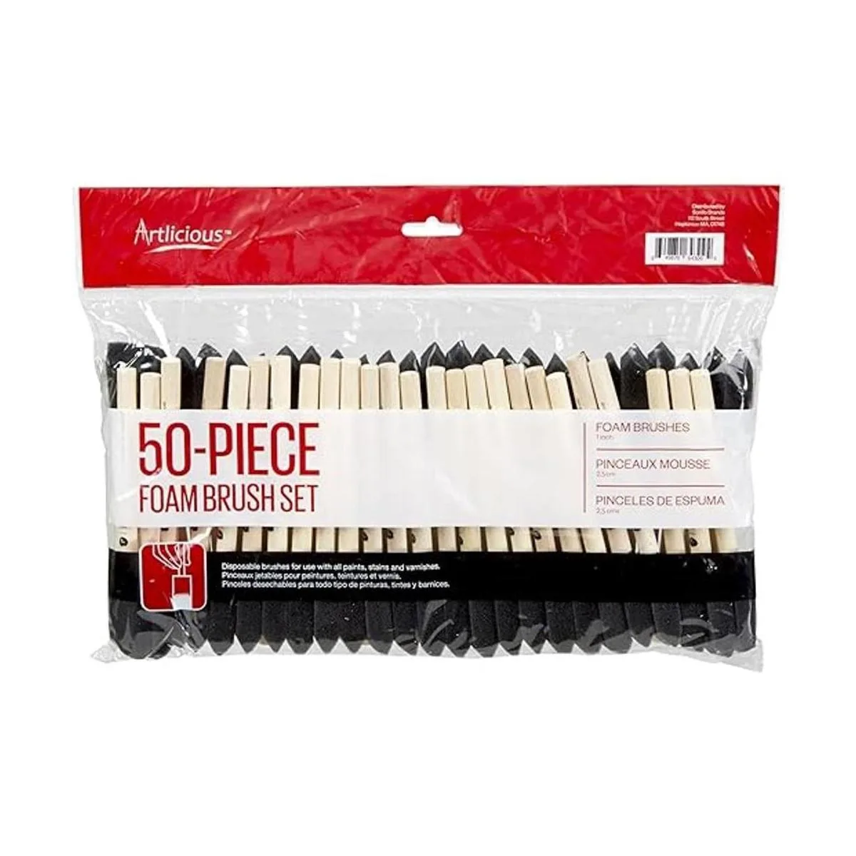 Artlicious Juego de 50 pinceles de espuma desechables de 1 pulgada para pintura acrílica, manchas, barnices y proyectos de manualidades de bricolaje, suministros de arte