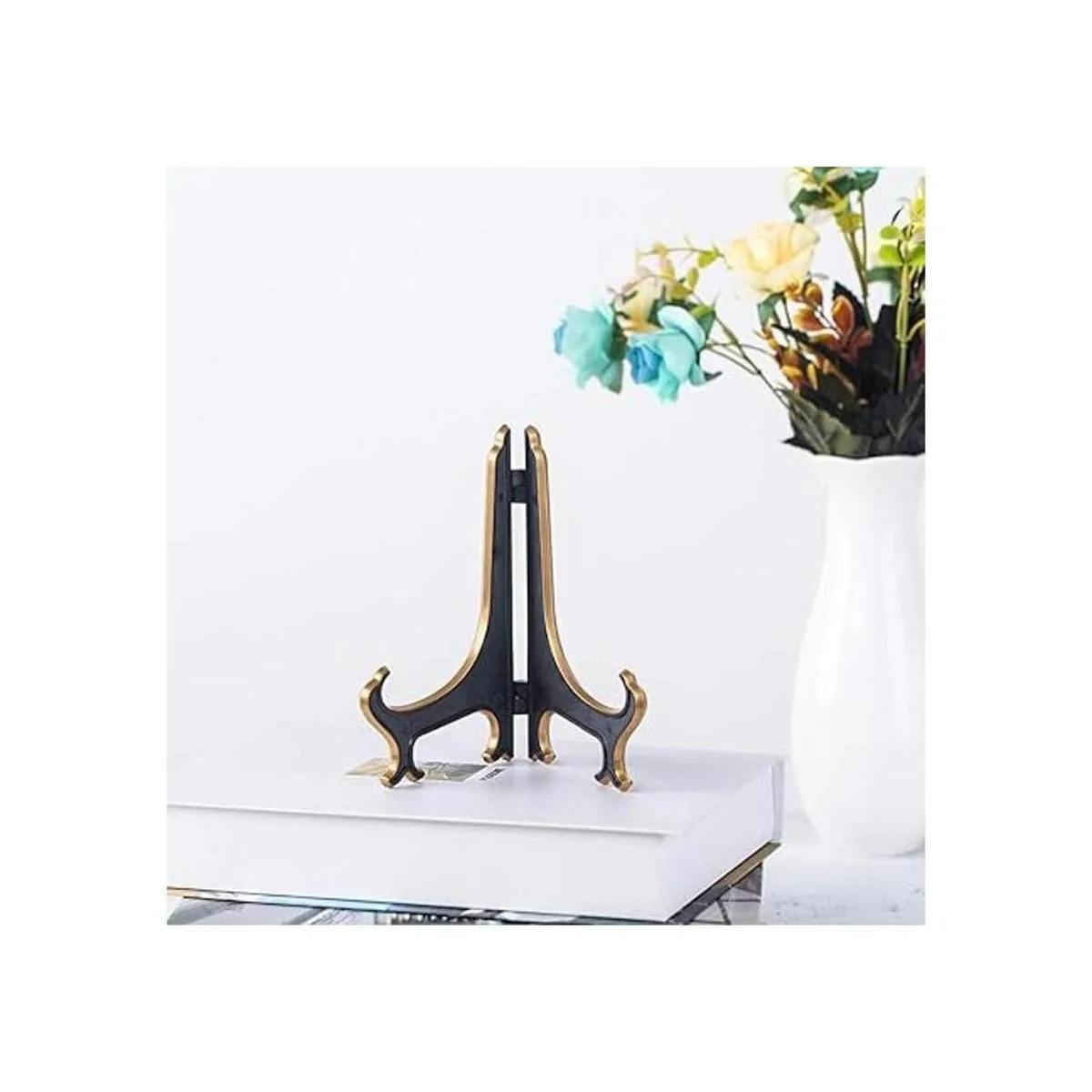 Artliving Soporte decorativo para placa de 6.0 in 6 pulgadas de plástico, soporte para marco de fotos, color negro y dorado