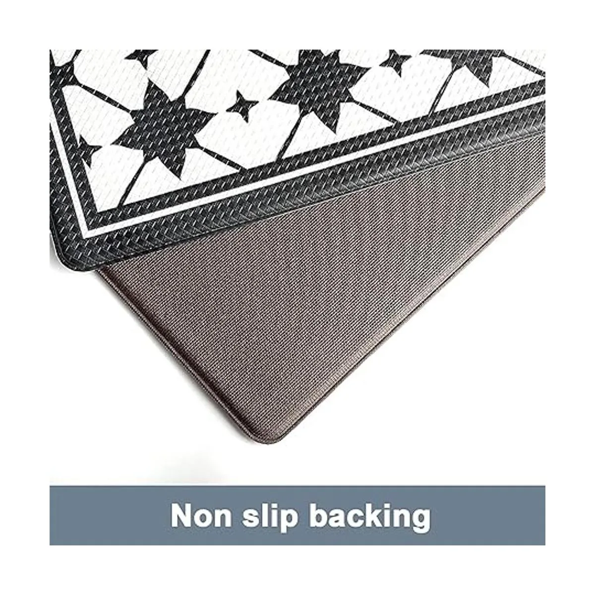 Artnice Alfombras de cocina antifatiga de 2 piezas, modernas alfombras geométricas cruzadas de cocina, ergonómicas de espuma viscoelástica de PVC para fregadero de pie, baño, lavandería, blanco y negro