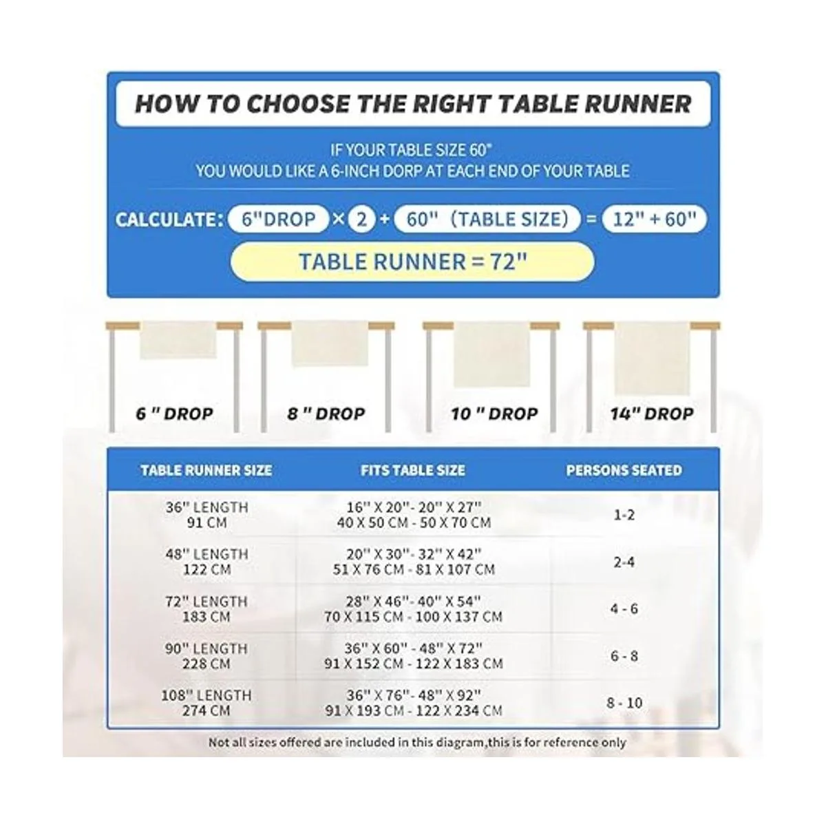 Se adapta a tamaños de mesa: este camino de mesa es de 13 x 72 pulgadas, adecuado para una mesa con capacidad para 4 a 6 personas, combina mejor con tu mesa y te da una experiencia gastronómica deliciosa