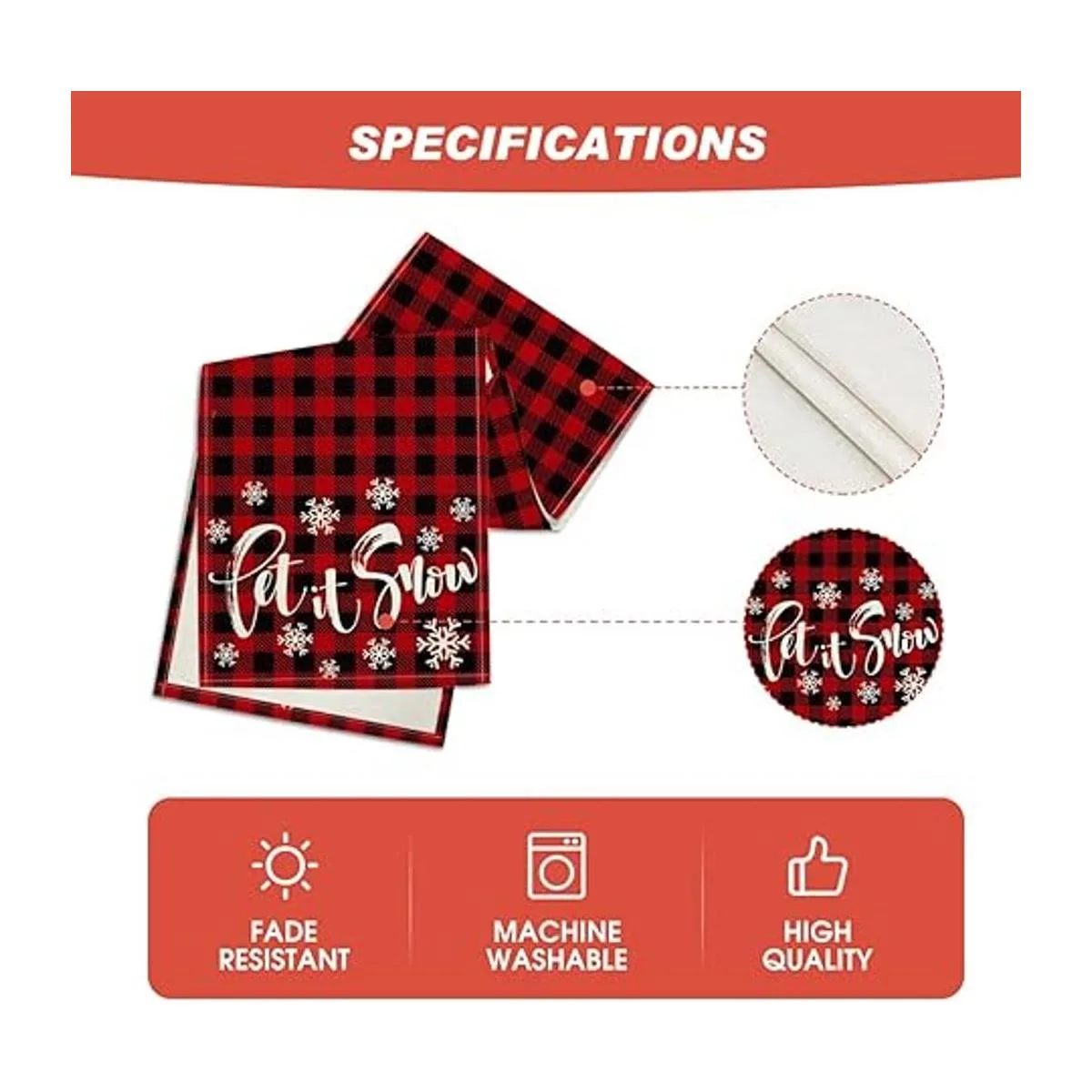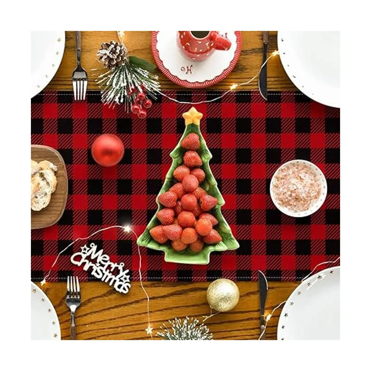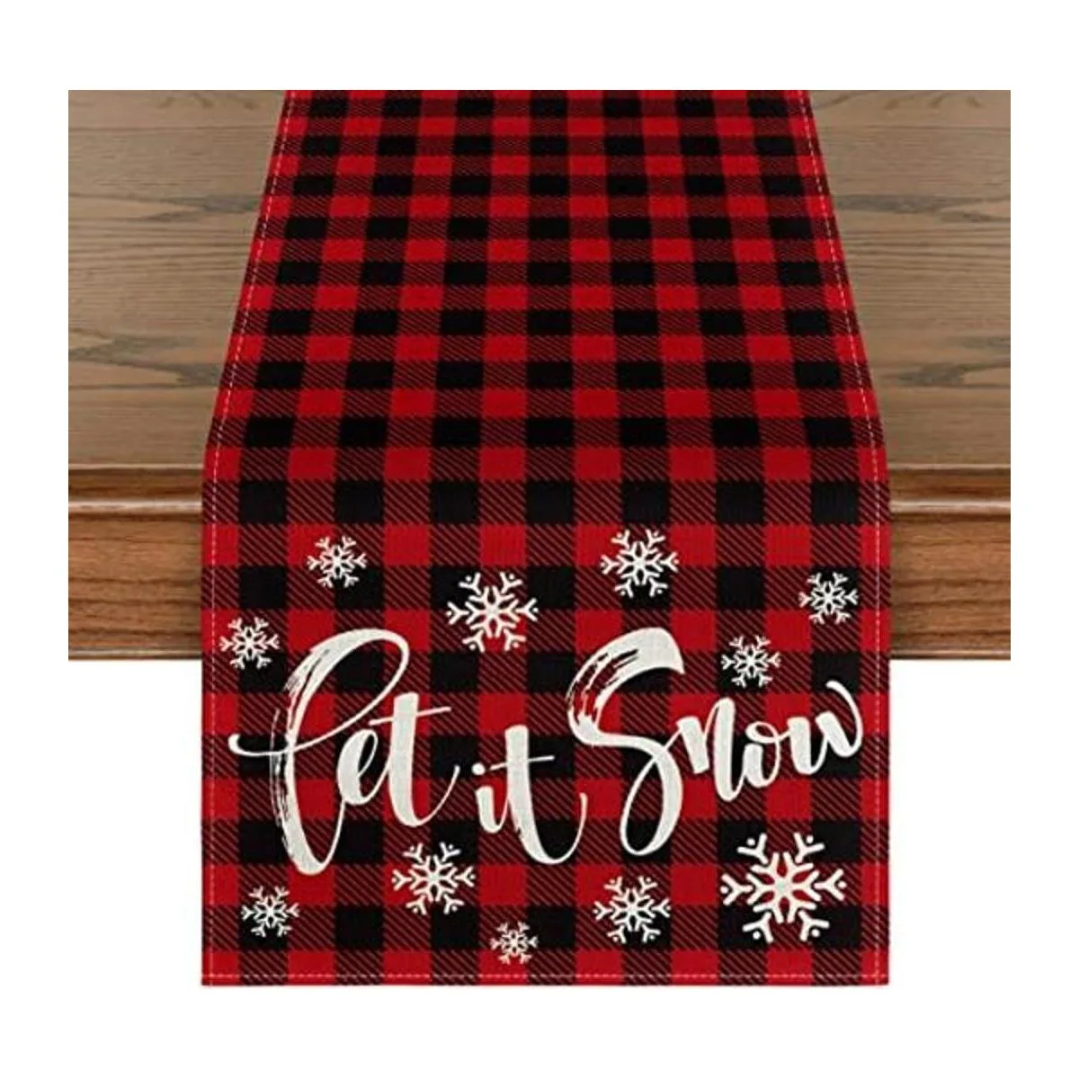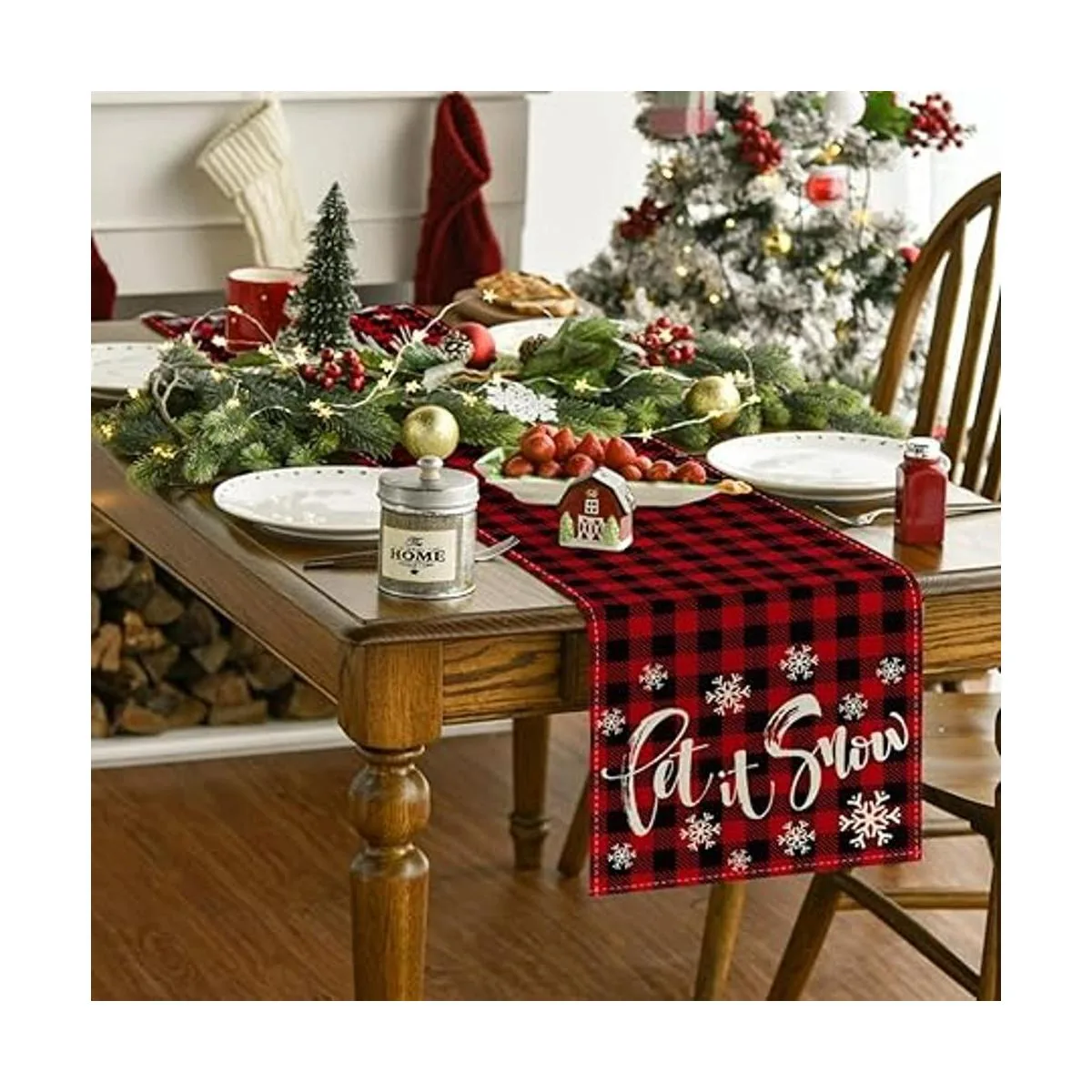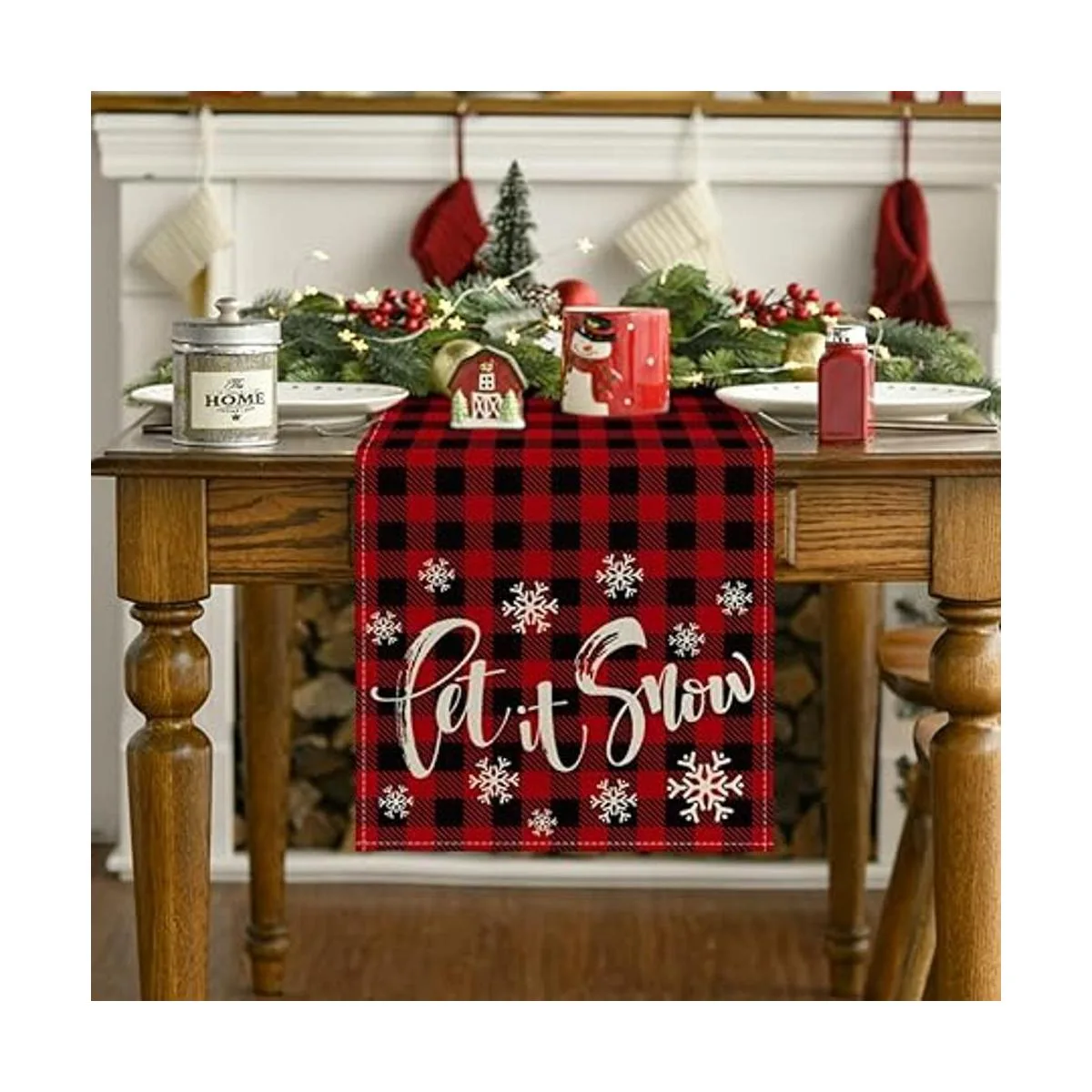Artoid Mode Camino de mesa de nieve con diseño de búfalo rojo y negro, para invierno, Navidad, vacaciones, cocina, comedor, decoración para interiores y exteriores, 13 x 72 pulgadas