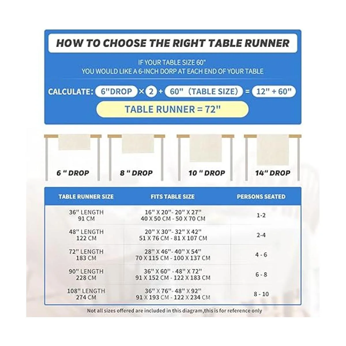 Se adapta al tamaño de la mesa: este camino de mesa es de 13 x 72 pulgadas, adecuado para una mesa que puede acomodar de 4 a 6 personas, combina mejor con tu mesa y te da una deliciosa experiencia gastronómica