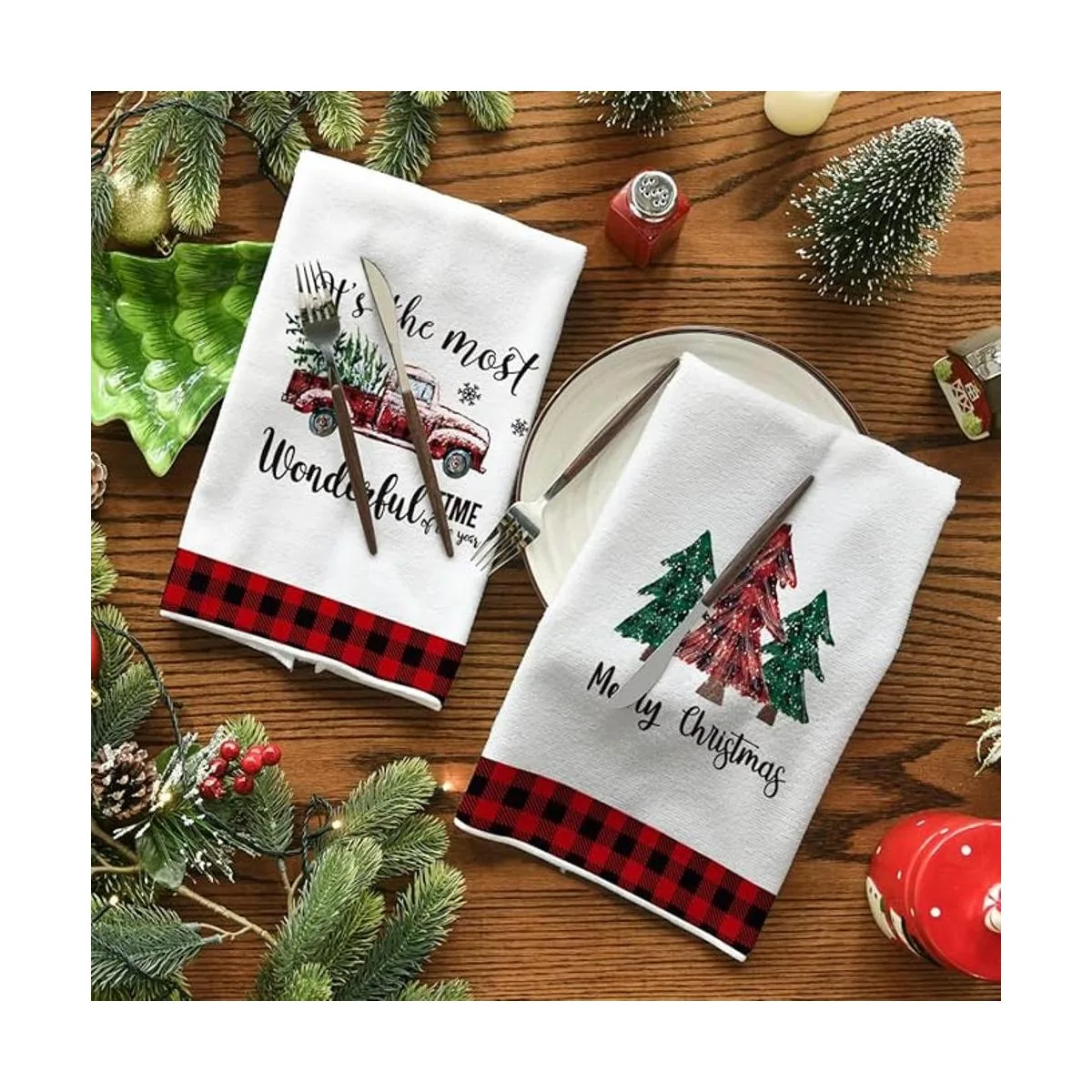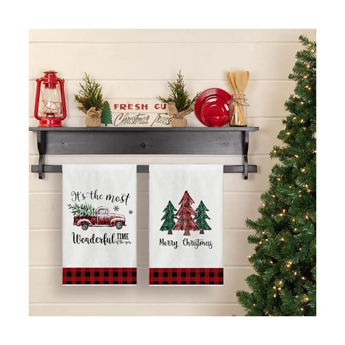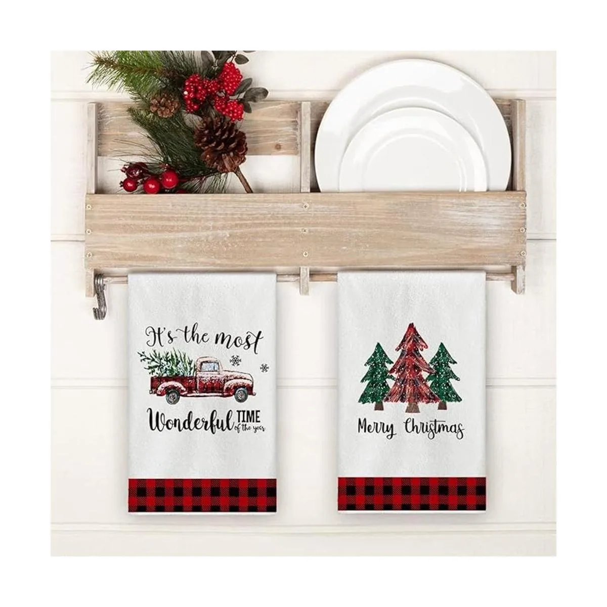 Artoid Mode Juego de 2 toallas de cocina y platos de árboles de Navidad de 18 x 26 pulgadas para invierno, vacaciones de Navidad, ultra absorbentes, paños de secado para cocinar y hornear