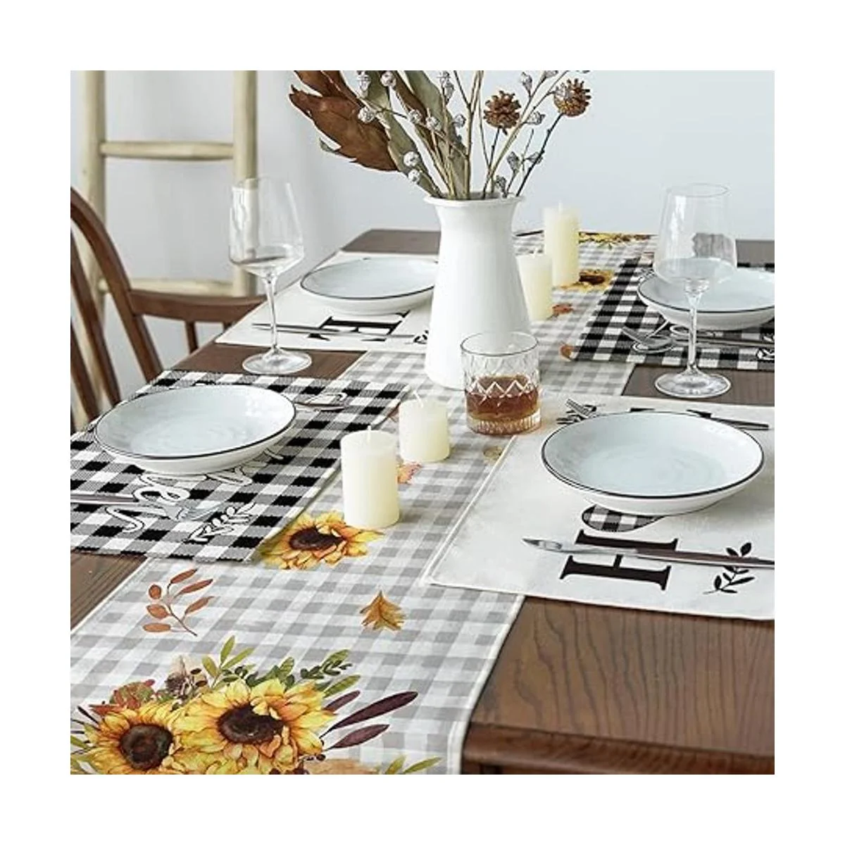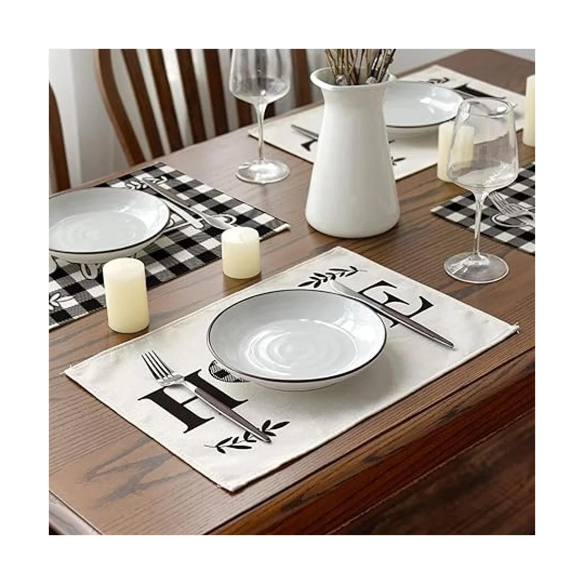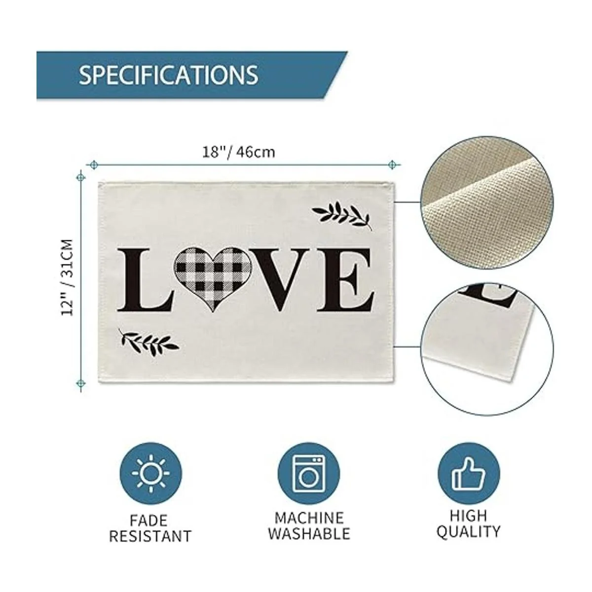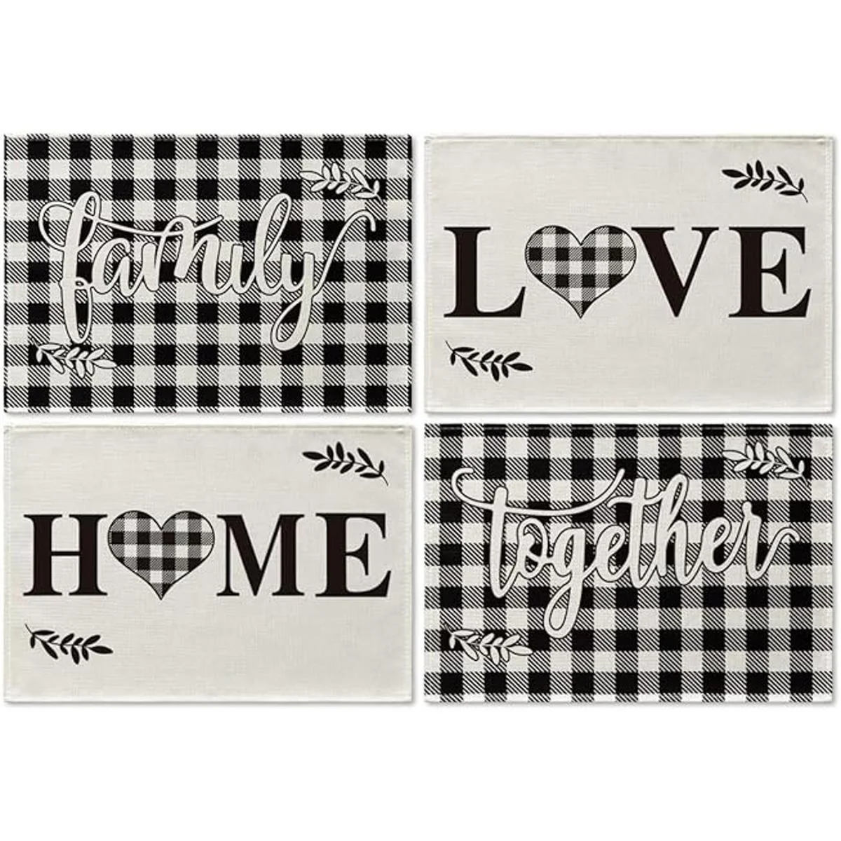Artoid Mode Love Family Together Home Juego de 4 manteles individuales a cuadros de búfalo para mesa de comedor, 12 x 18 pulgadas, vintage, para Acción de Gracias, lavables, para festividades