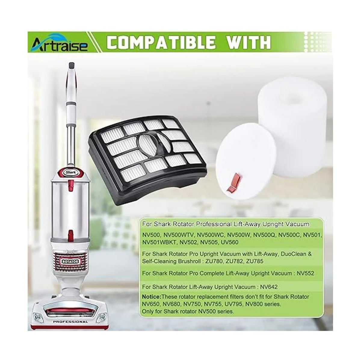 Artraise Filtro de vacío de repuesto para Shark Rotator Pro Liftaway NV500 NV501 NV502 NV505 NV520 NV552 UV560 NV642 ZU780 ZU782 ZU785, reemplazo de la pieza Xff500 Xhf500. 2 HEPA 4 Espuma y fieltro Filtros