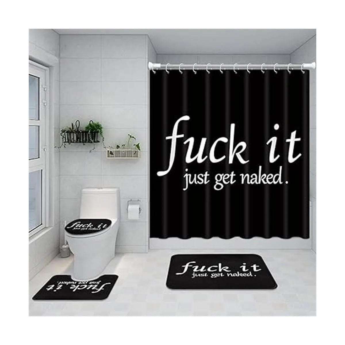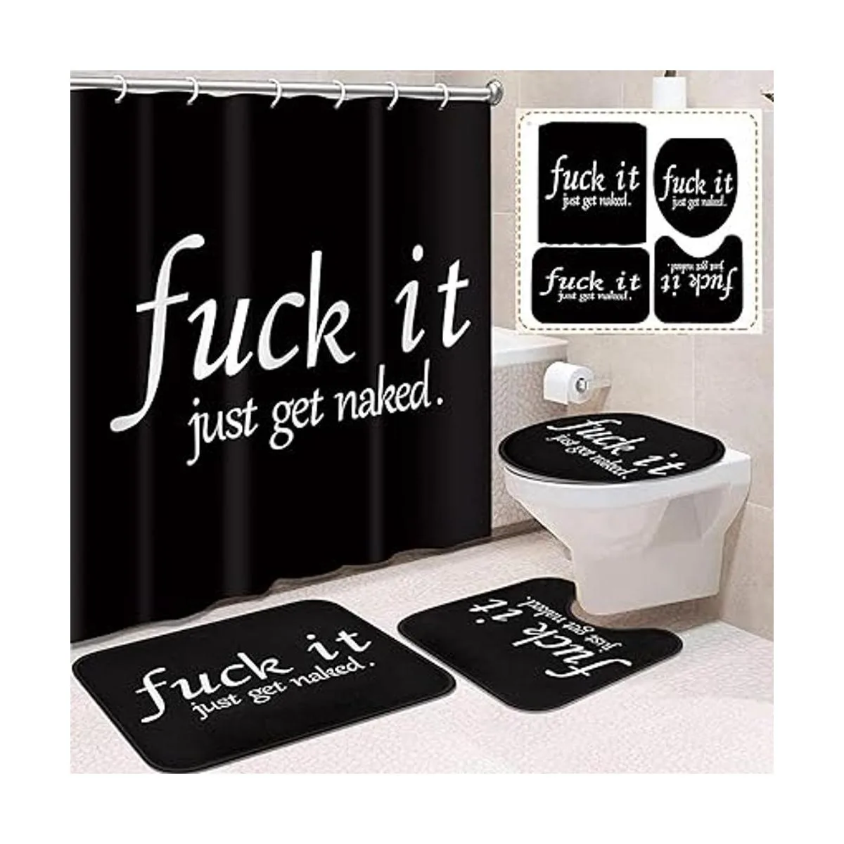 ArtSocket Juego de 4 cortinas de ducha divertidas con alfombras, cortinas de baño con alfombra antideslizante, cubierta de tapa de inodoro, tapete de baño y 12 ganchos, 72 x 72 pulgadas