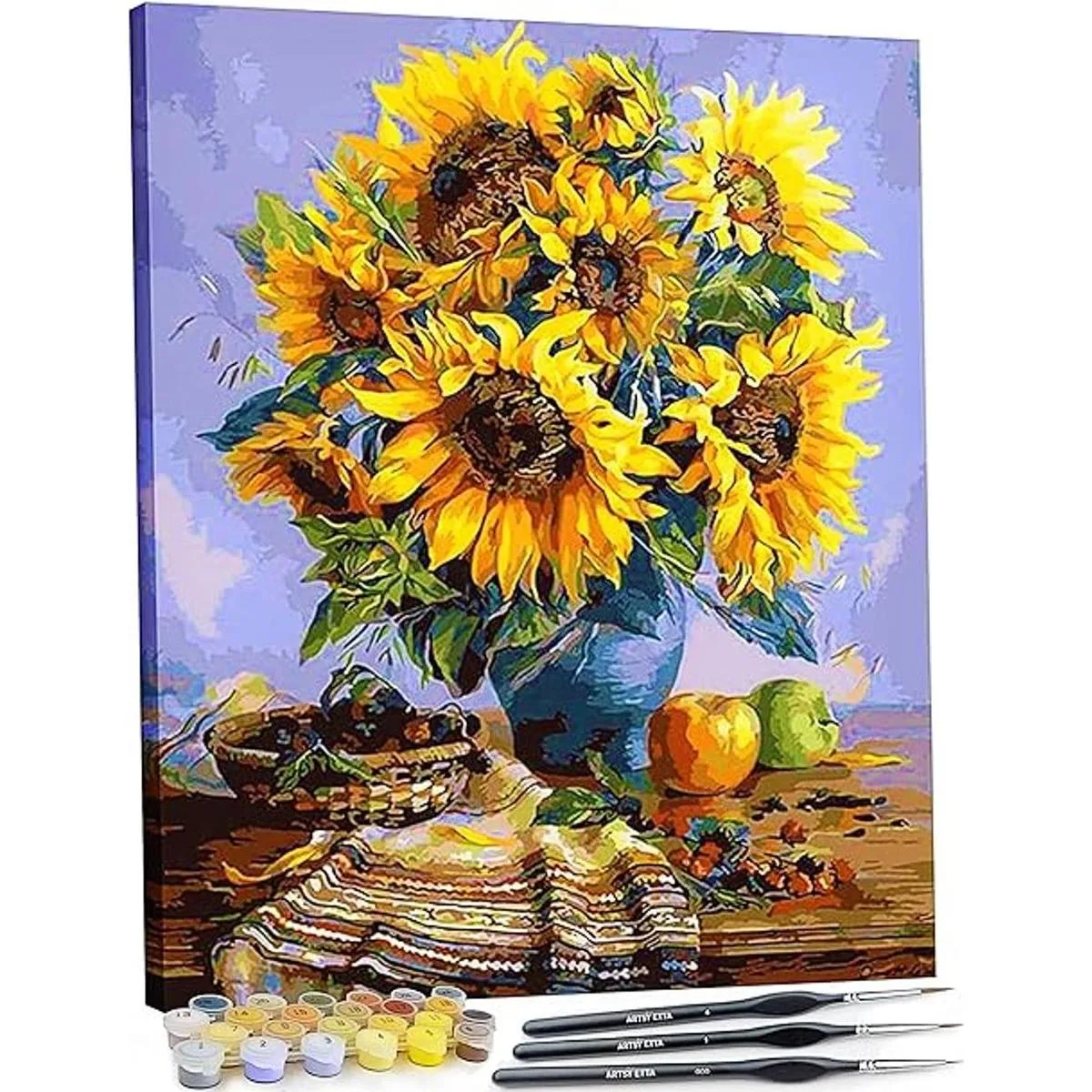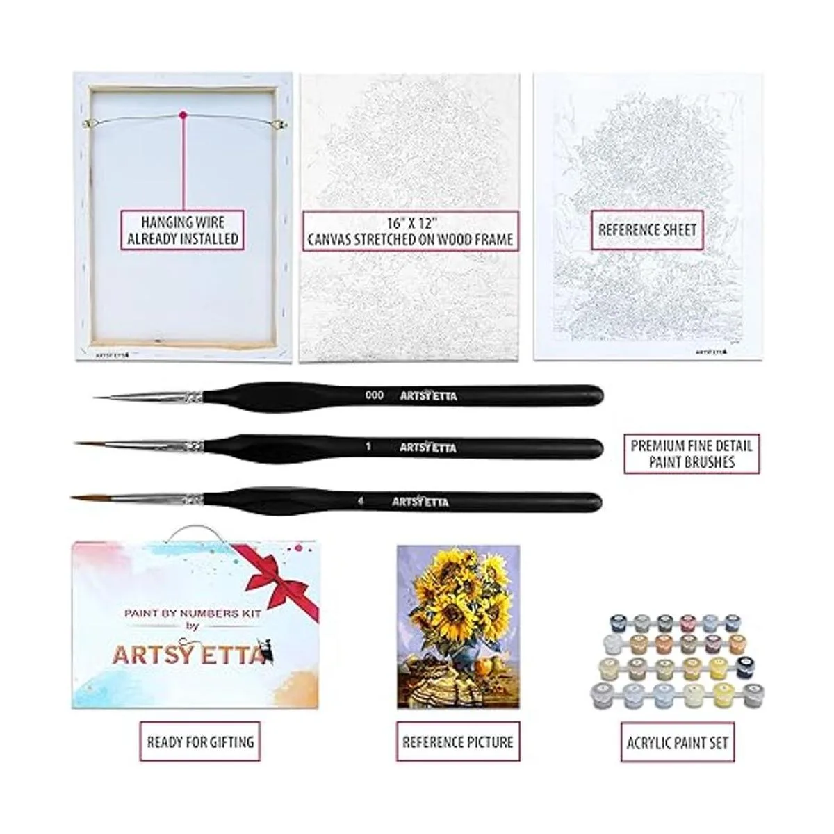 Artsy Etta Pintura por números para adultos, lienzo enmarcado, kits de pintura por números para adultos, pintura enmarcada por números para adultos con marco, pintura por números y flores, juego de arte y manualidades fácil de hacer tú mismo