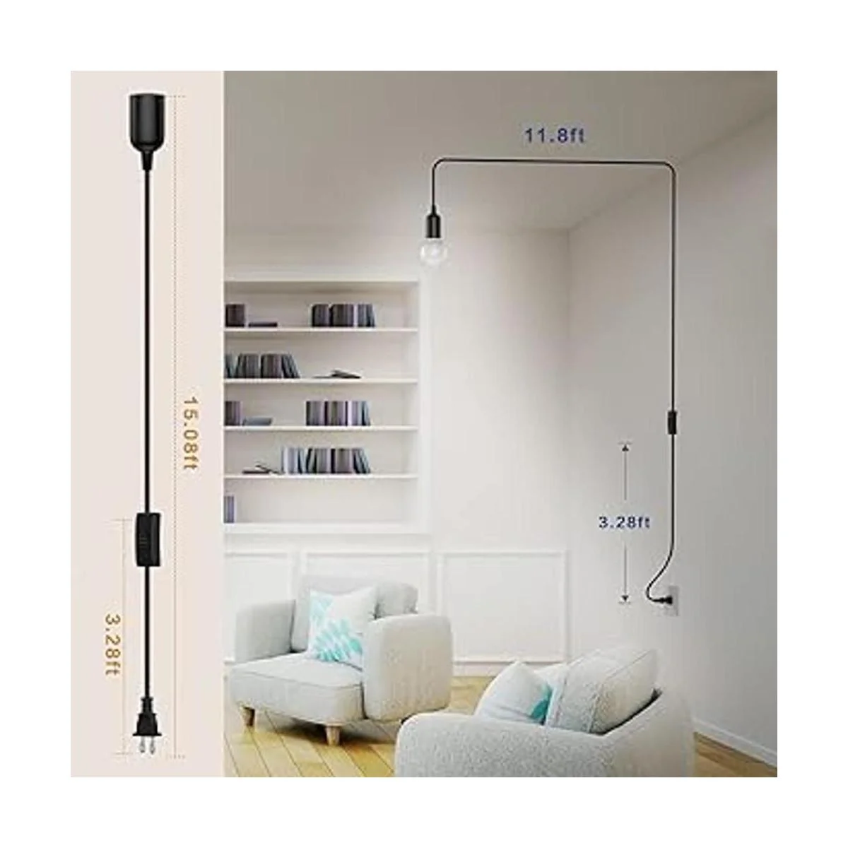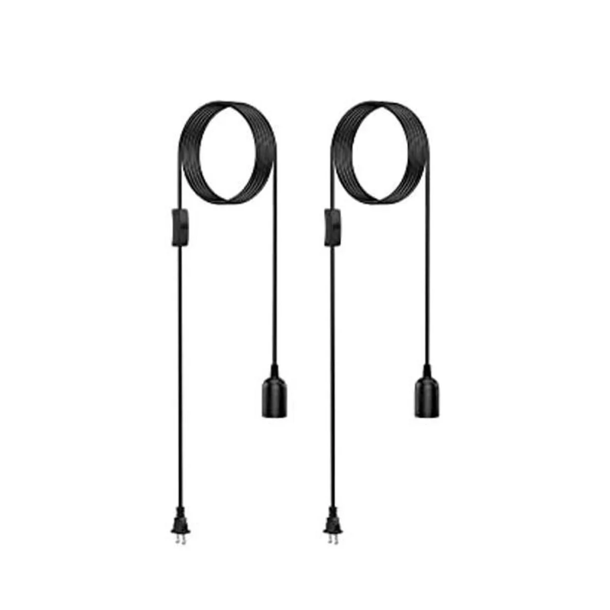 AryaLight Paquete de 2 cables de luz colgantes, cable de luz colgante de 15 pies con interruptor de encendidoapagado E26 E27 no incluye bombilla cable de linterna colgante, color negro