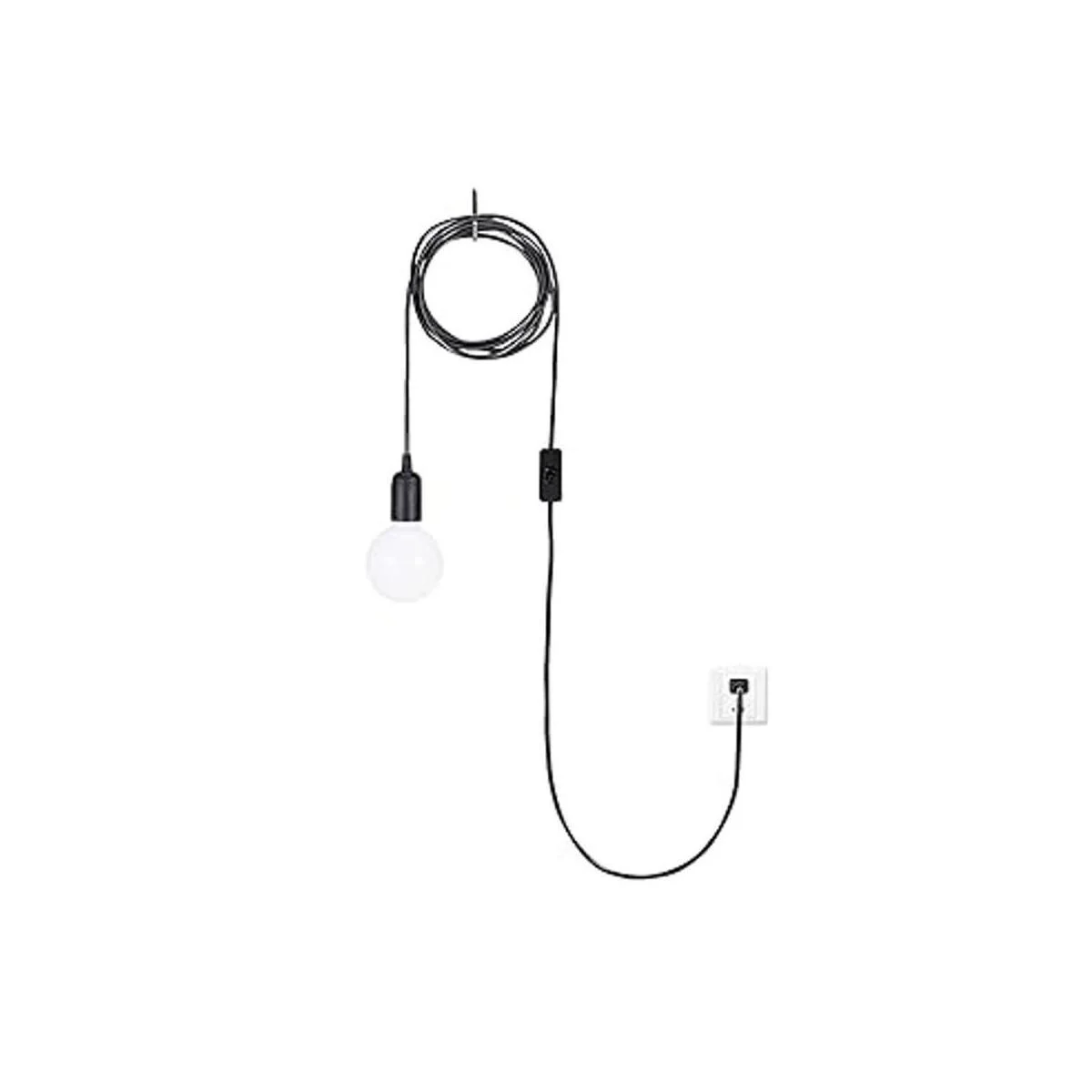 Cable redondo con alambre de cobre de 2 núcleos: kit de cable de luz colgante de un solo enchufe para linternas paquete de 2, 15 pies, negro. Este cable de lámpara tiene un interruptor en línea y tiene un enchufe estándar para sistemas eléctricos de Estados Unidos. La distancia del interruptor al enchufe es de aproximadamente 3.3 pies.