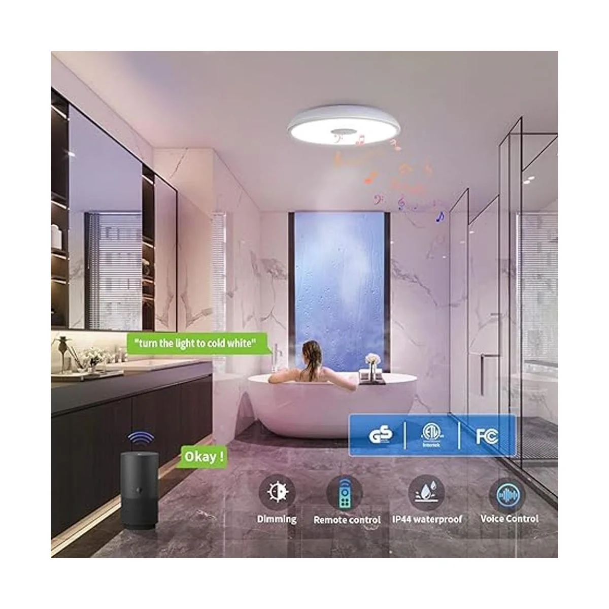 IP44 impermeable y resistente al polvo: grado impermeable IP44. Diseño sellado para evitar salpicaduras de agua y vapor de baño. Excelente rendimiento a prueba de polvo, fácil de limpiar, adecuado para interiores y exteriores, como baño y ducha