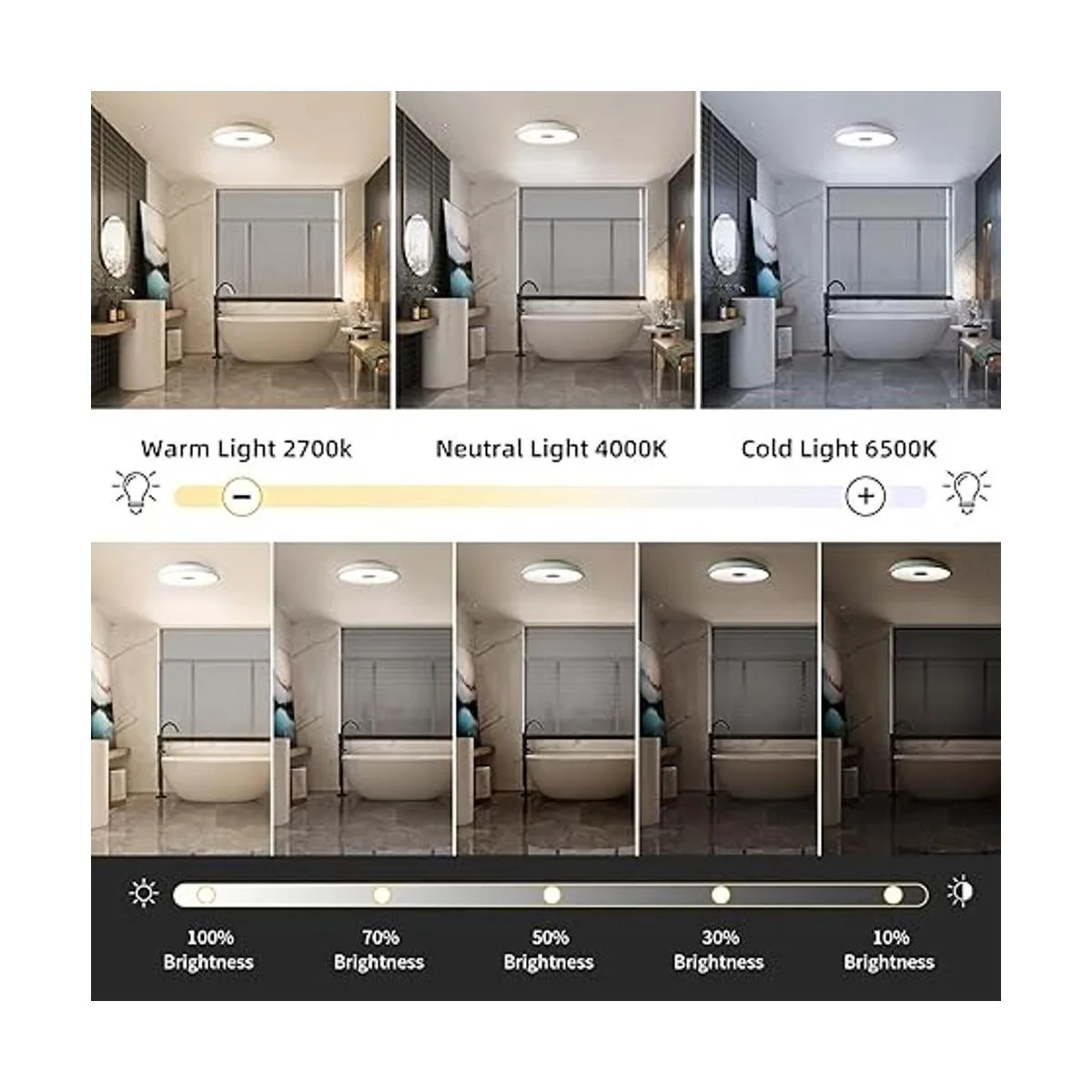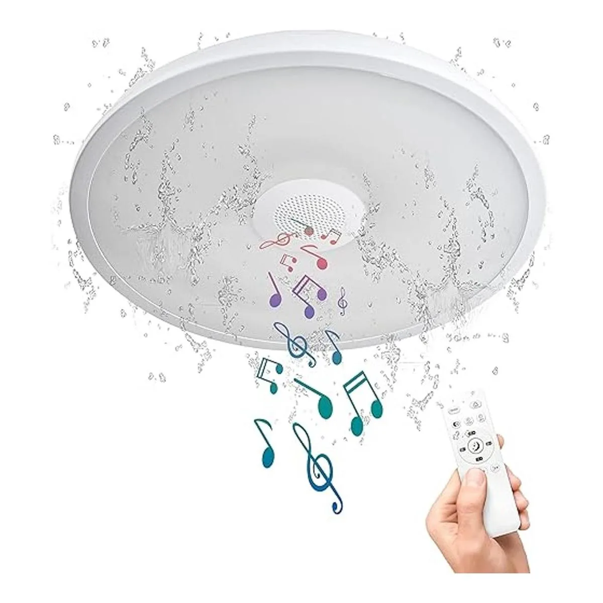 ASALL Lámpara de techo impermeable inteligente, lámpara de techo LED de música, con altavoz Bluetooth, 11 pulgadas, 18 W, 2700 K6500 K, luz de cambio de color RGB regulable con control remoto, para baño, ducha, dormitorio