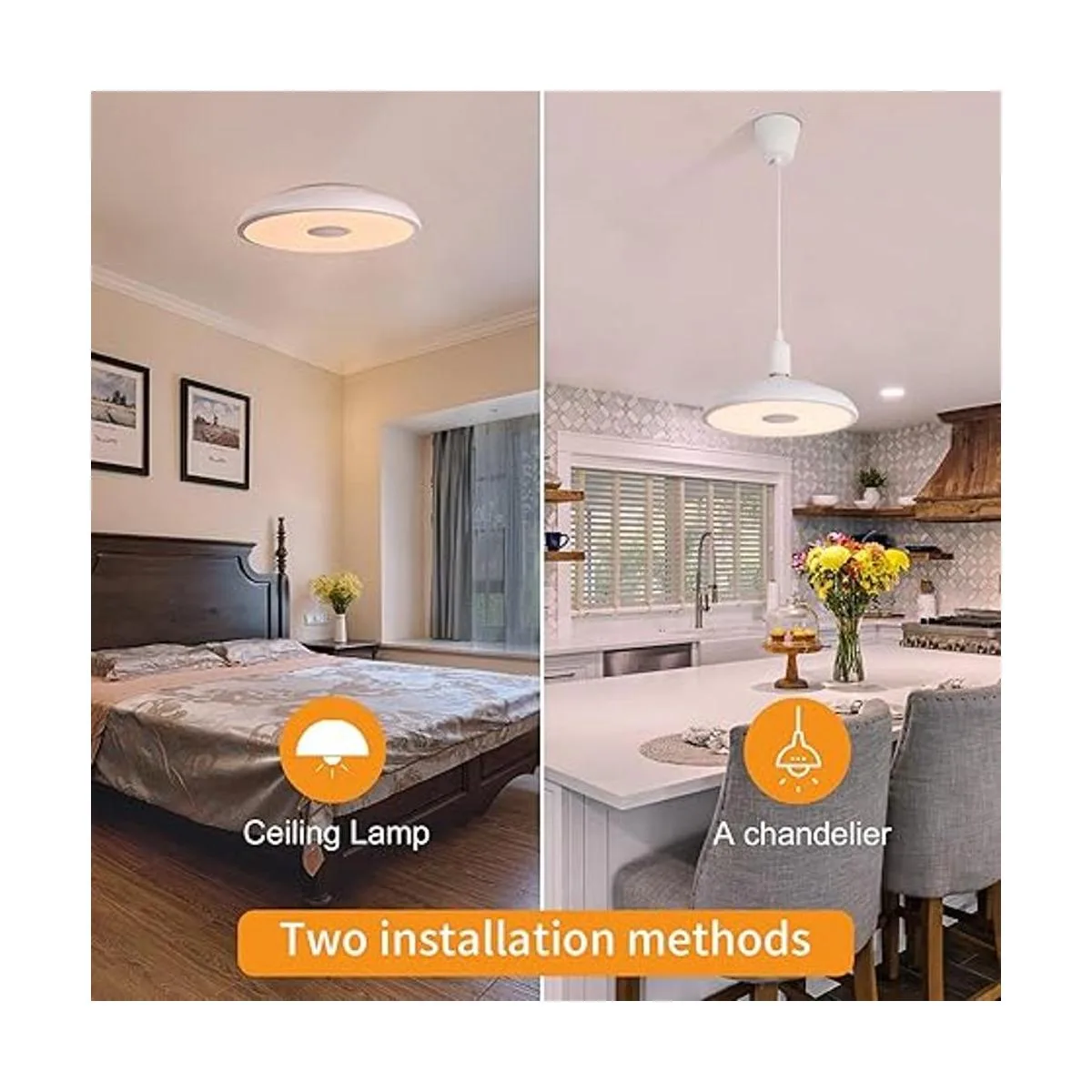 Altavoz Bluetooth de alta calidad: conecta la lámpara de techo con Bluetooth o tableta para reproducir tu música e historias favoritas. Hermosa calidad de sonido, las luces cambiarán con la música, o melodía rápida o lenta, y luego puedes disfrutar de los efectos de iluminación de fiestas, discotecas y bailes en casa, haciéndote más sumergirte en la diversión de la música. Disfruta de música o historias con tus hijos, y podrás disfrutar de un agradable tiempo de relajación en casa.
