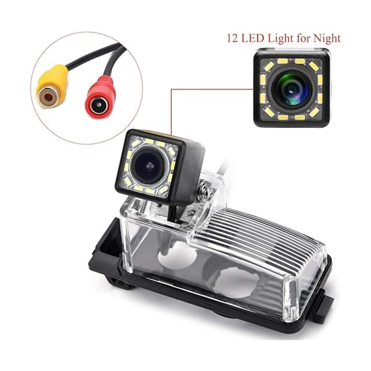 aSATAH 12 LED ajustable ángulo de visión trasera de coche cámara para Nissan Tiida, Versa HatchbackGrand LivinaPulsarFairlady Z y cámara de vehículo impermeable de marcha atrás 12 LED ángulo ajustable