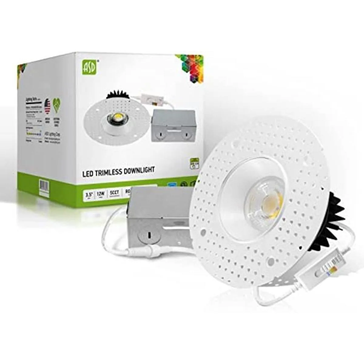 ASD Iluminación empotrada LED sin recorte, 3.5 pulgadas, redonda, 12 W, luz LED comercial CCT ajustable, 27003000350040005000K regulable, luz de techo LED regulable, color blanco, ETL Energy Star