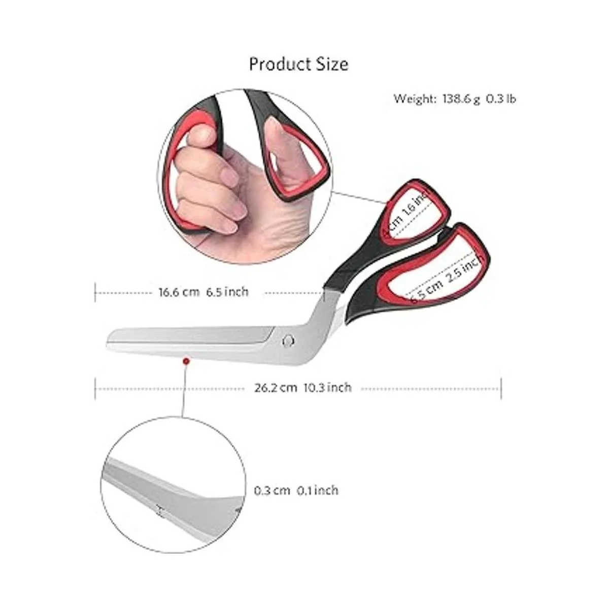 Asdirne Tijeras para pizza, cortador de pizza con hoja desmontable ultra afilada y agarre suave ergonómico, 10.3 pulgadas, negro y rojo