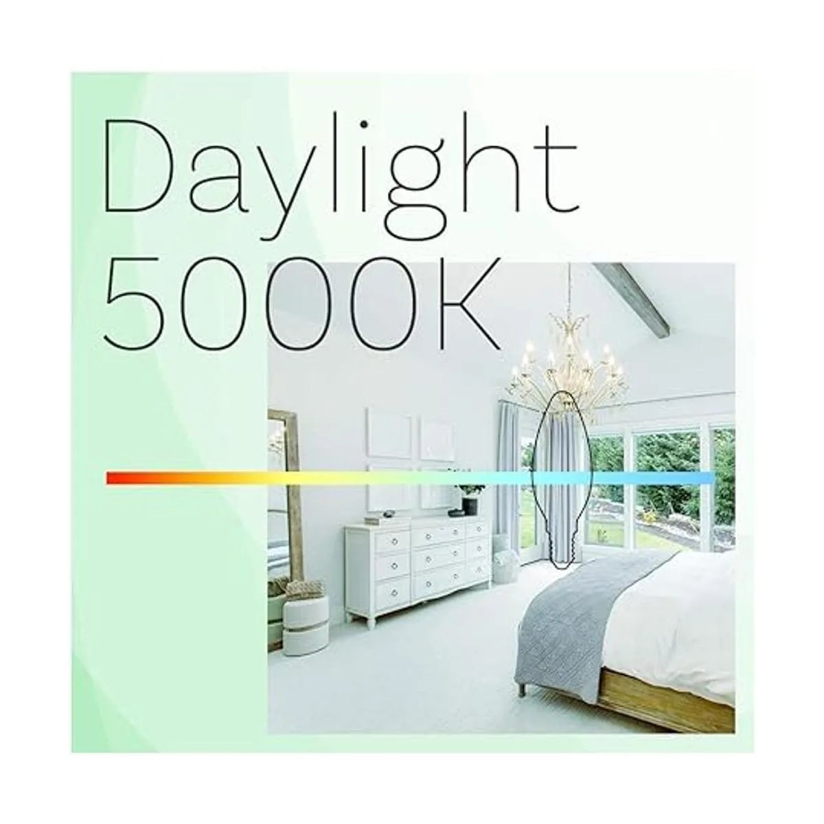 Luz cómoda: con una temperatura de color correlacionada de luz diurna de 5000 Kelvin, esta bombilla crea un ambiente cálido y acogedor para cualquier sala de estar, comedor, dormitorio, baño, etc.