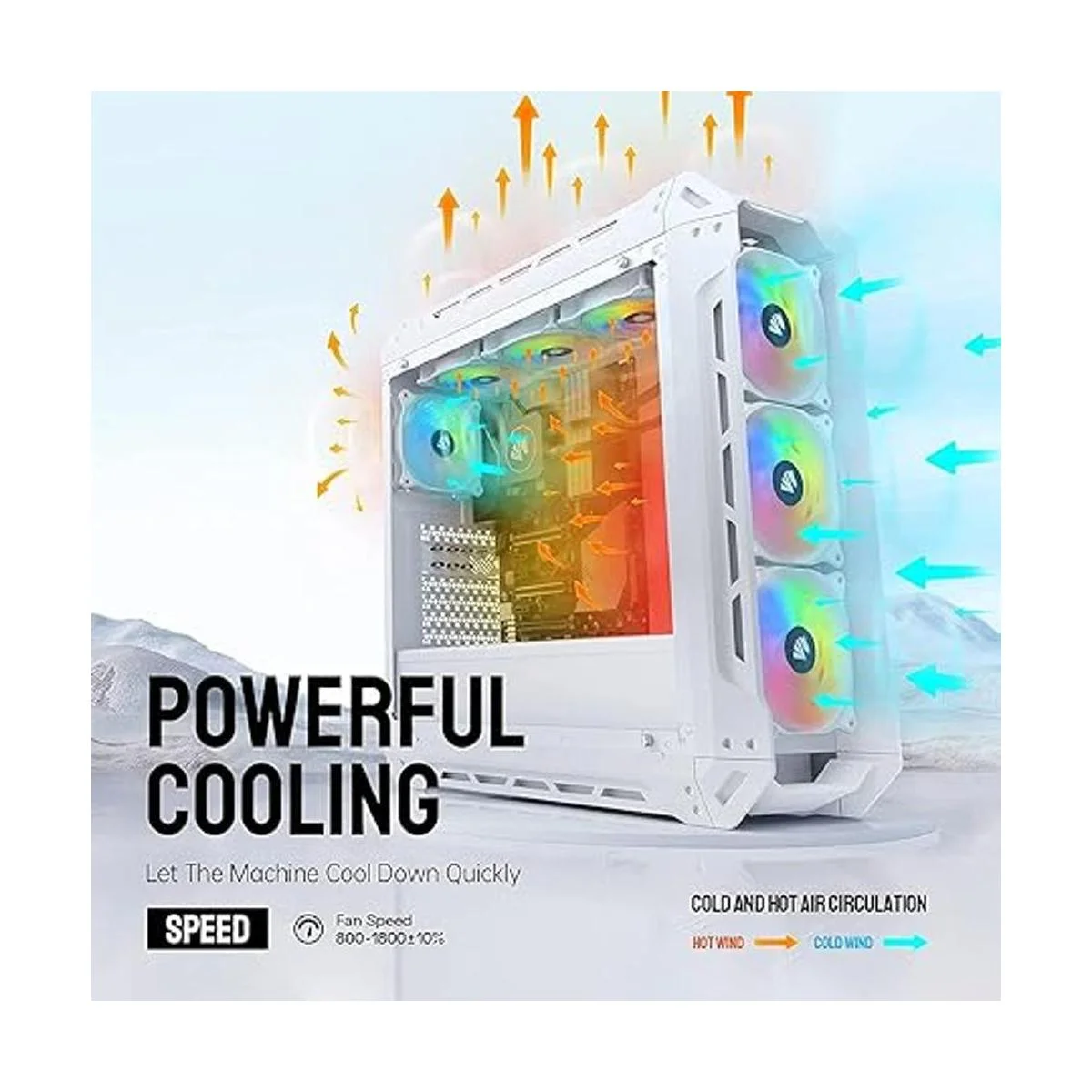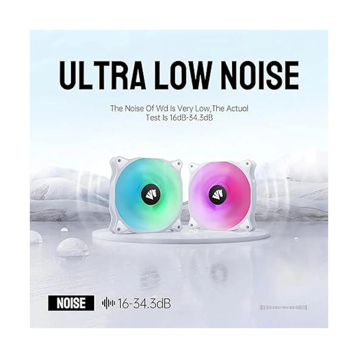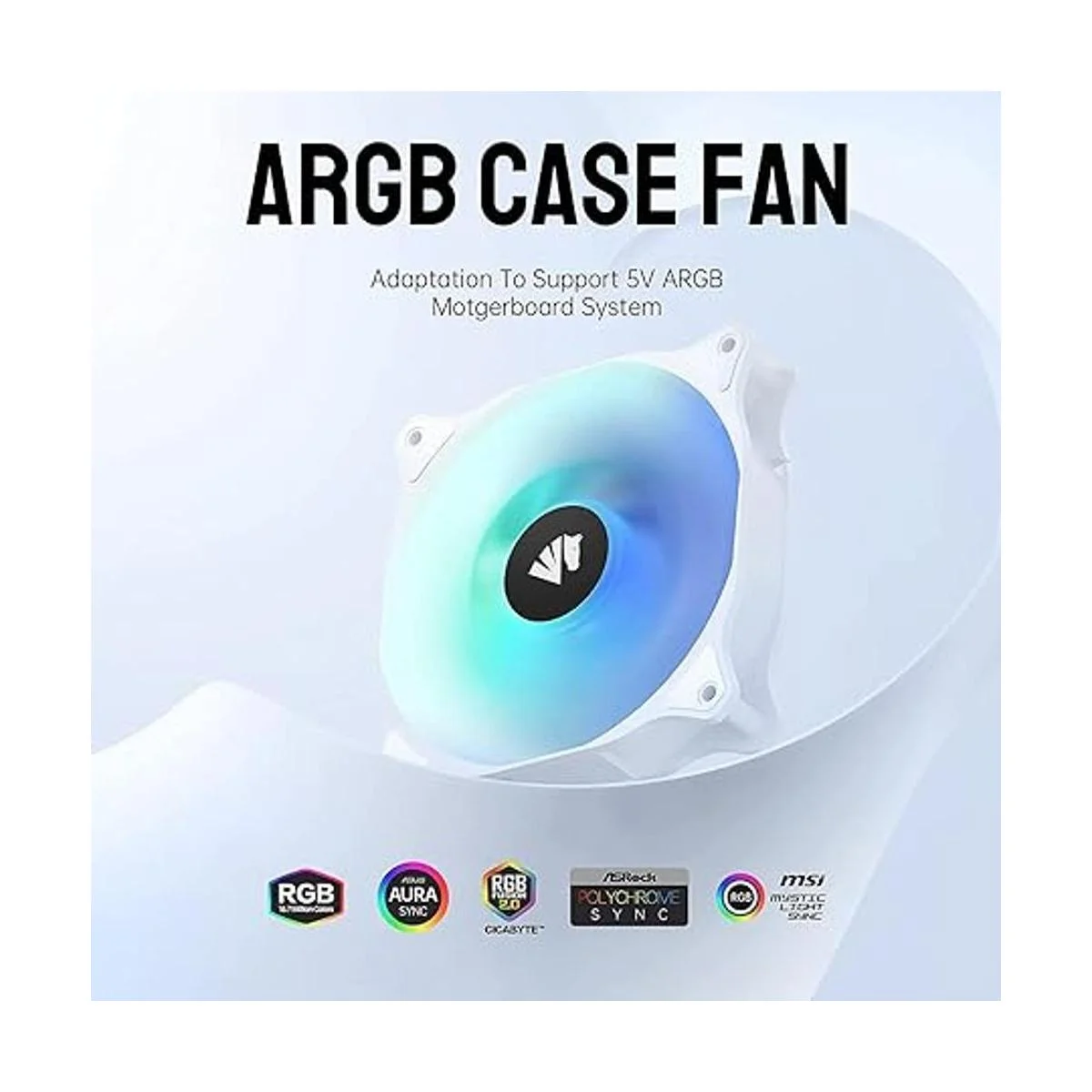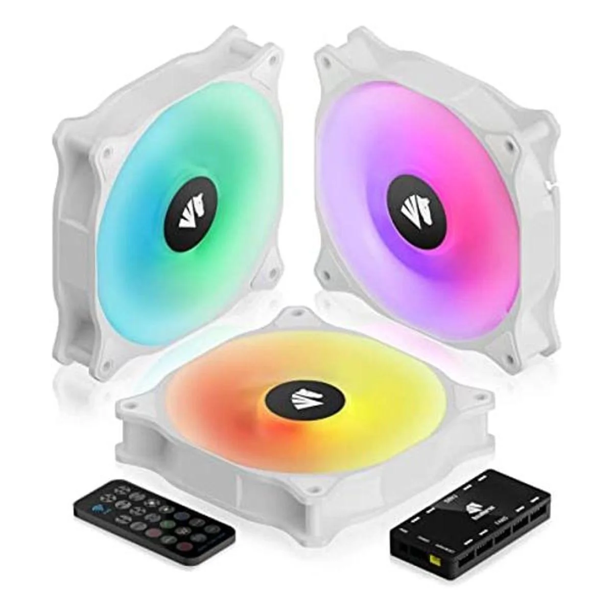 ASIAHORSE Serie WD001 Ventilador de caja de 4.724 in con controlador, ventilador de carcasa de computadora ARGB blanco de 5 V, ventilador silencioso de alto flujo de aire ajustable, efecto de luz para computadora, paquete de 3