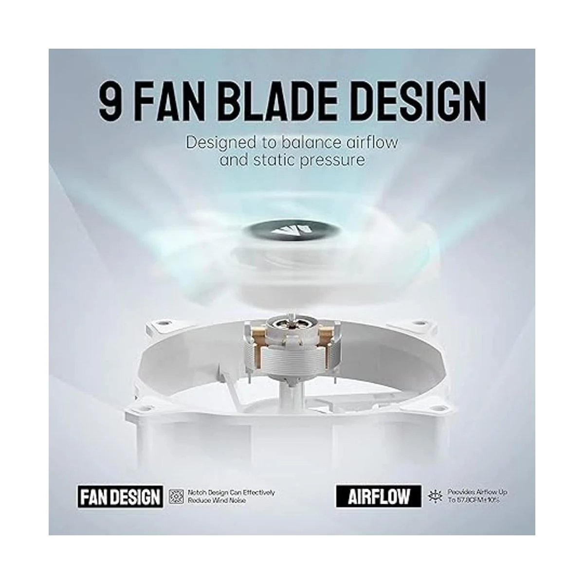 Diseño de 9 aspas de ventilador: el ventilador de computadora está diseñado para un flujo de aire equilibrado y presión estática. El diseño de muesca de cada borde de la hoja del ventilador RGB de 4.724 in puede reducir eficazmente el ruido del viento, proporcionar hasta 53.38 CFM de flujo de aire, perfecto para aplicaciones de carcasa o radiador.