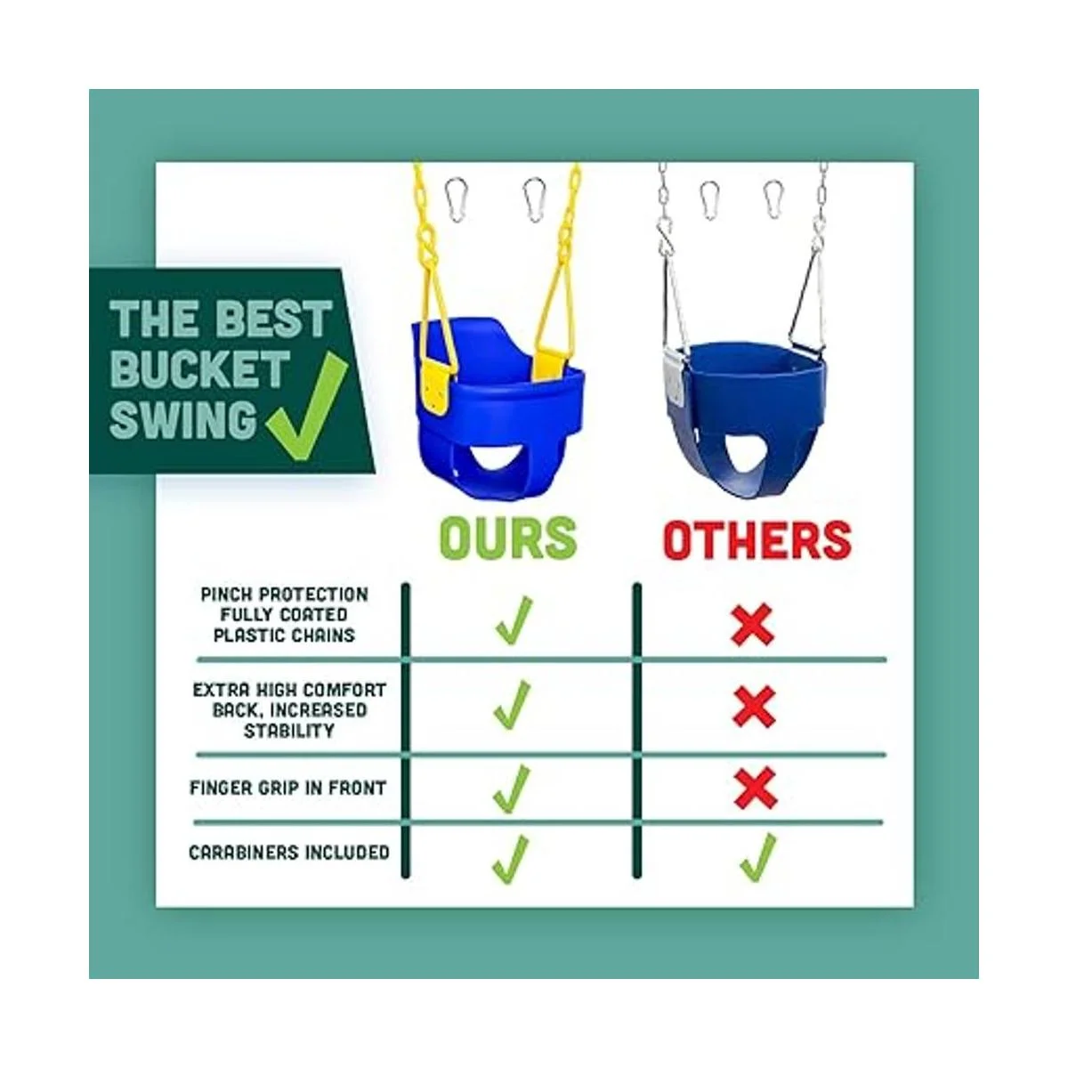 Especificaciones: Incluye 1 10.5 x 10 columpio de cubo para bebés y niños pequeños de hasta 150 libras. Nuestros columpios se fijan fácilmente a tu juego existente o gimnasio de la selva con cadena ajustable para una instalación cómoda y de bricolaje