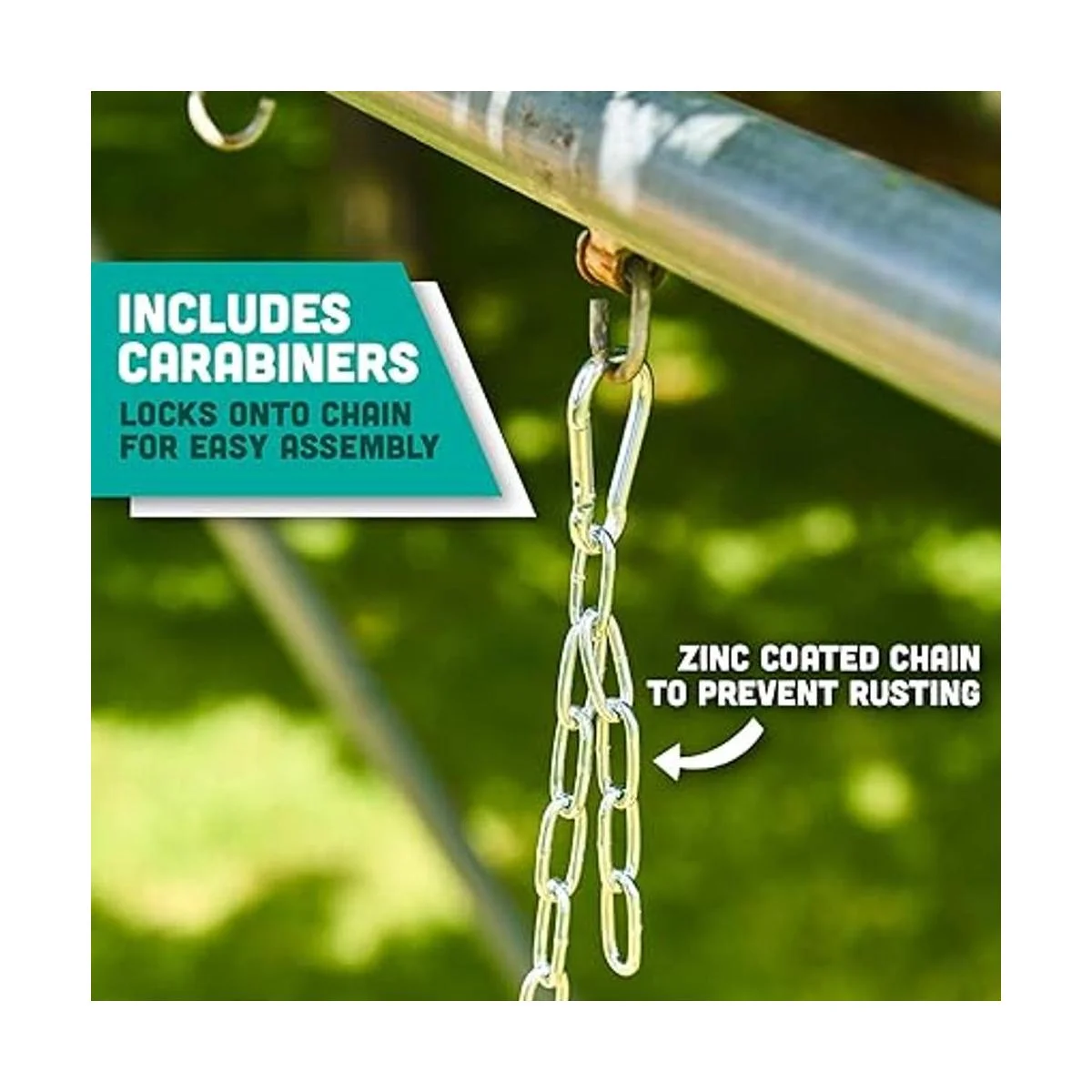 Diseño sin pellizcos: nuestros columpios incluyen 66 de cadena de metal con los 30 inferiores. Sumergido en plástico no tóxico para proteger las manos y los dedos pequeños. Nuestro diseño único garantiza que los niños estén seguros mientras se balancean con comodidad