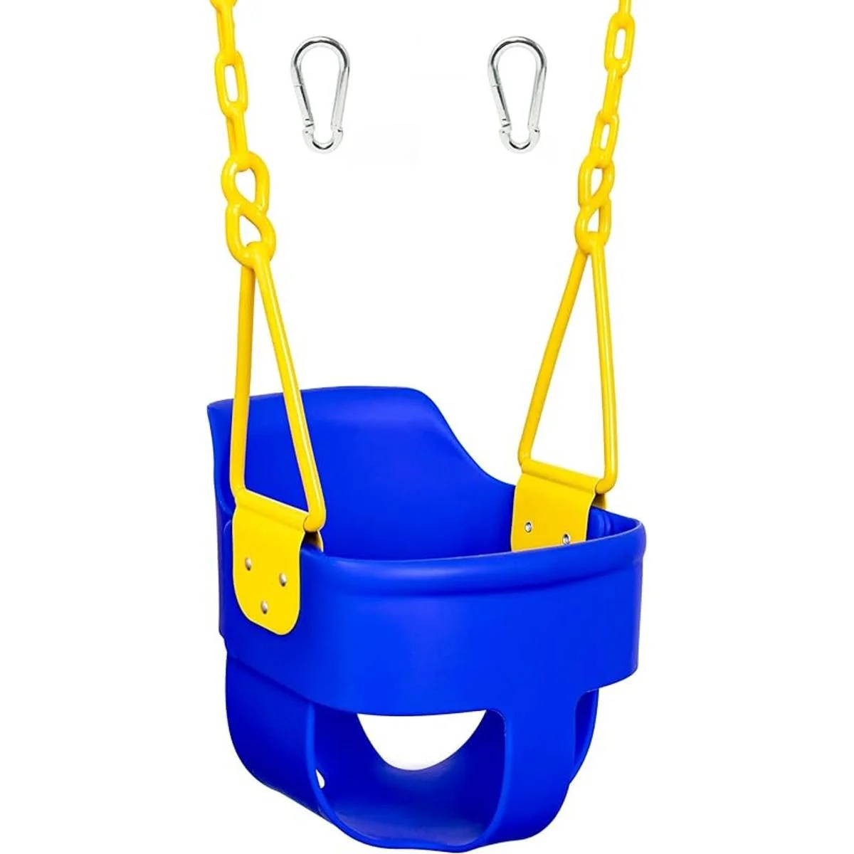 Asiento de columpio para niños pequeños con respaldo alto de alta calidad con agarre para los dedos, cadenas recubiertas de plástico y mosquetones para una fácil instalación Azul Productos de ardillas