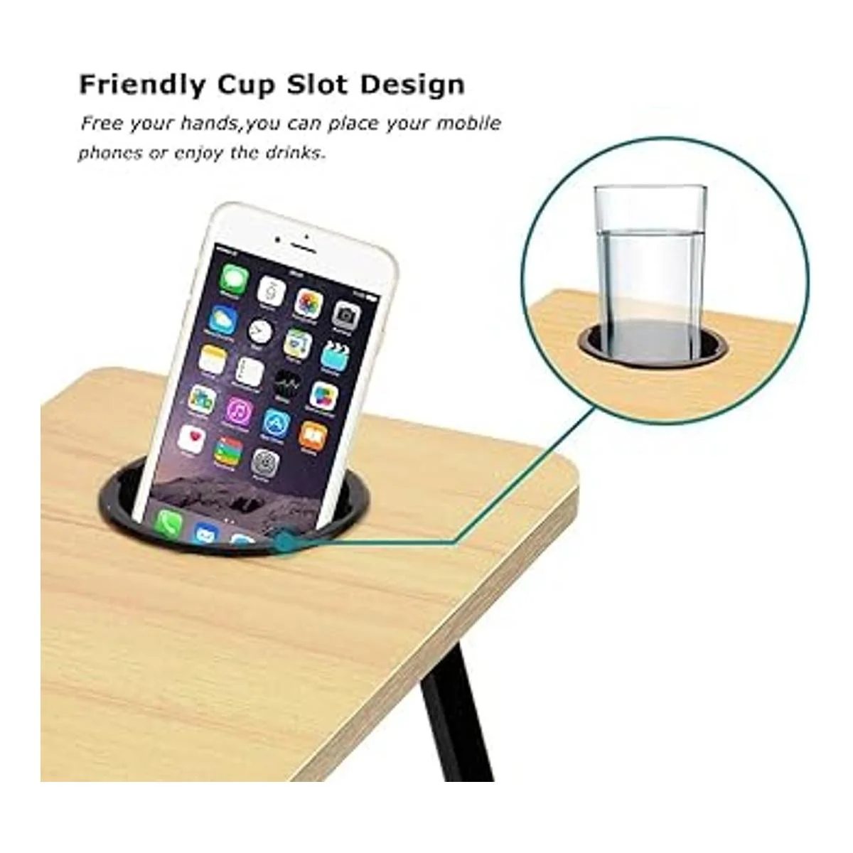 Asltoy Bandeja de cama para laptop, escritorio plegable para cama, soporte de escritorio plegable con soporte para tazas, mesa portátil ajustable para laptop, bandeja de cama para cama, cuaderno de regazo arce blanco
