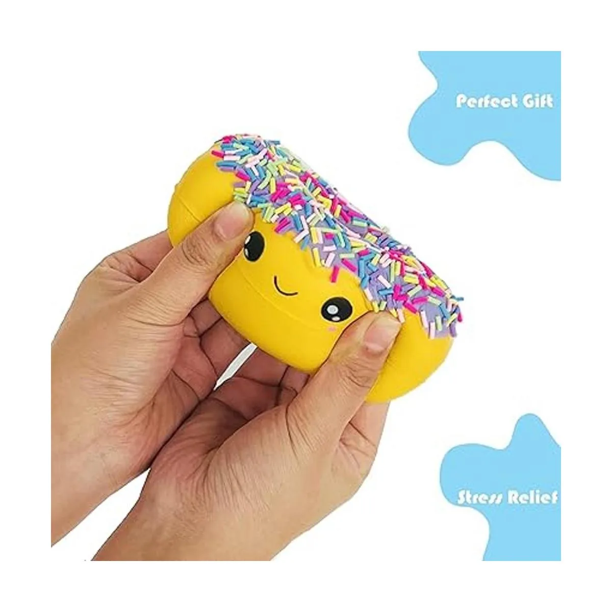 Multifunción: los esponjosos de dona arcoíris pueden aliviar el estrés y la ansiedad, ayudar a los niños con autismo o trastorno de hiperactividad por déficit de atención, aumentar la circulación sanguínea en las manos, y también se pueden utilizar para regalos de cumpleaños, decoraciones de fiesta, Navidad, Halloween, suministros de vacaciones, juguetes de cocina para niños, juguetes de primera infancia, etc.