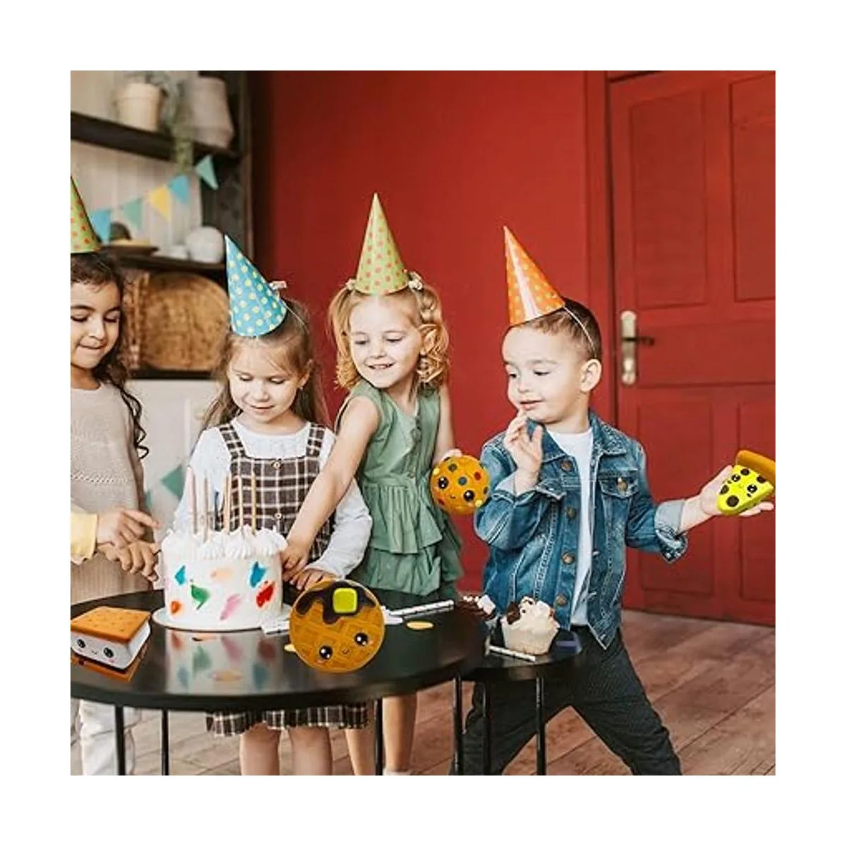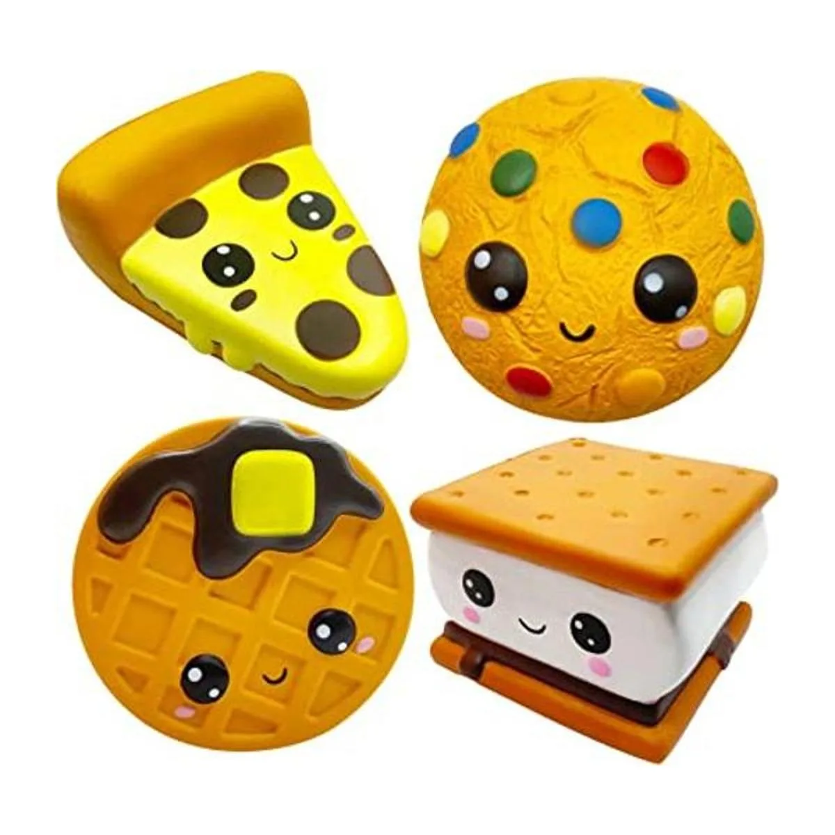 ASMFUOY Slow Rising 4 piezas Smore Squishies, bonito regalo de cumpleaños para niños, ojos grandes, paquete de galletas de pizza más inteligentes, paquete de gofres, juguetes para aliviar el estrés estilo A