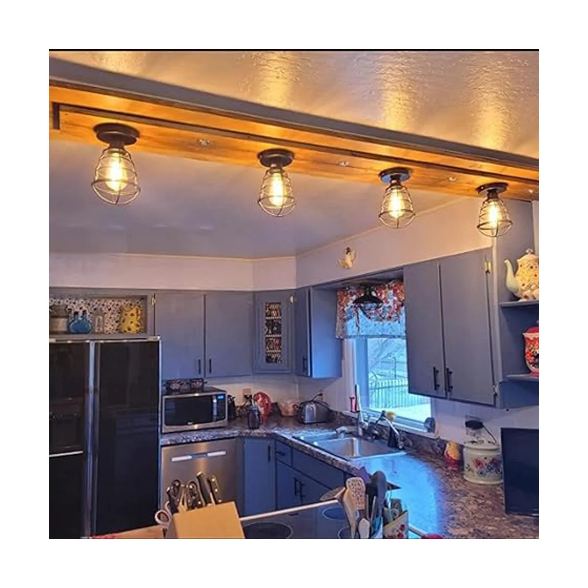 Material de alta calidad: el soporte de techo estilo granja con jaula de metal está hecho de materiales de buena calidad, rendimiento constante y larga vida útil.