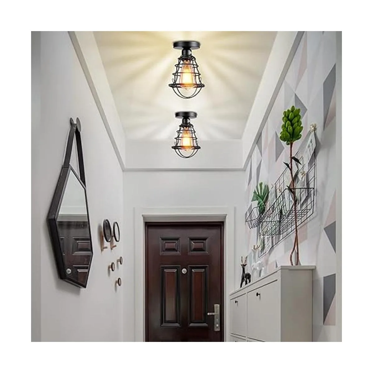 Asnxcju Lámpara de techo de montaje semiempotrado de estilo vintage, para pasillo, porche, escalera, dormitorio, cocina, 2 unidades, base E26, certificación UL