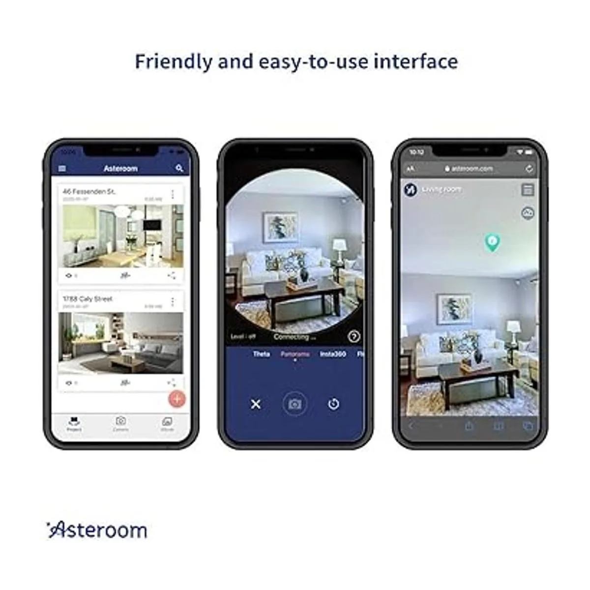 Asteroom Kit de 360 cámaras virtuales 3D Tour Real Estate Kit El equipo incluye trípode, rotor de cámara digital, lente de cámara ojo de pez funda de teléfono Samsung y iPhone Asteroom, no incluida, comprado por separado en Amazon