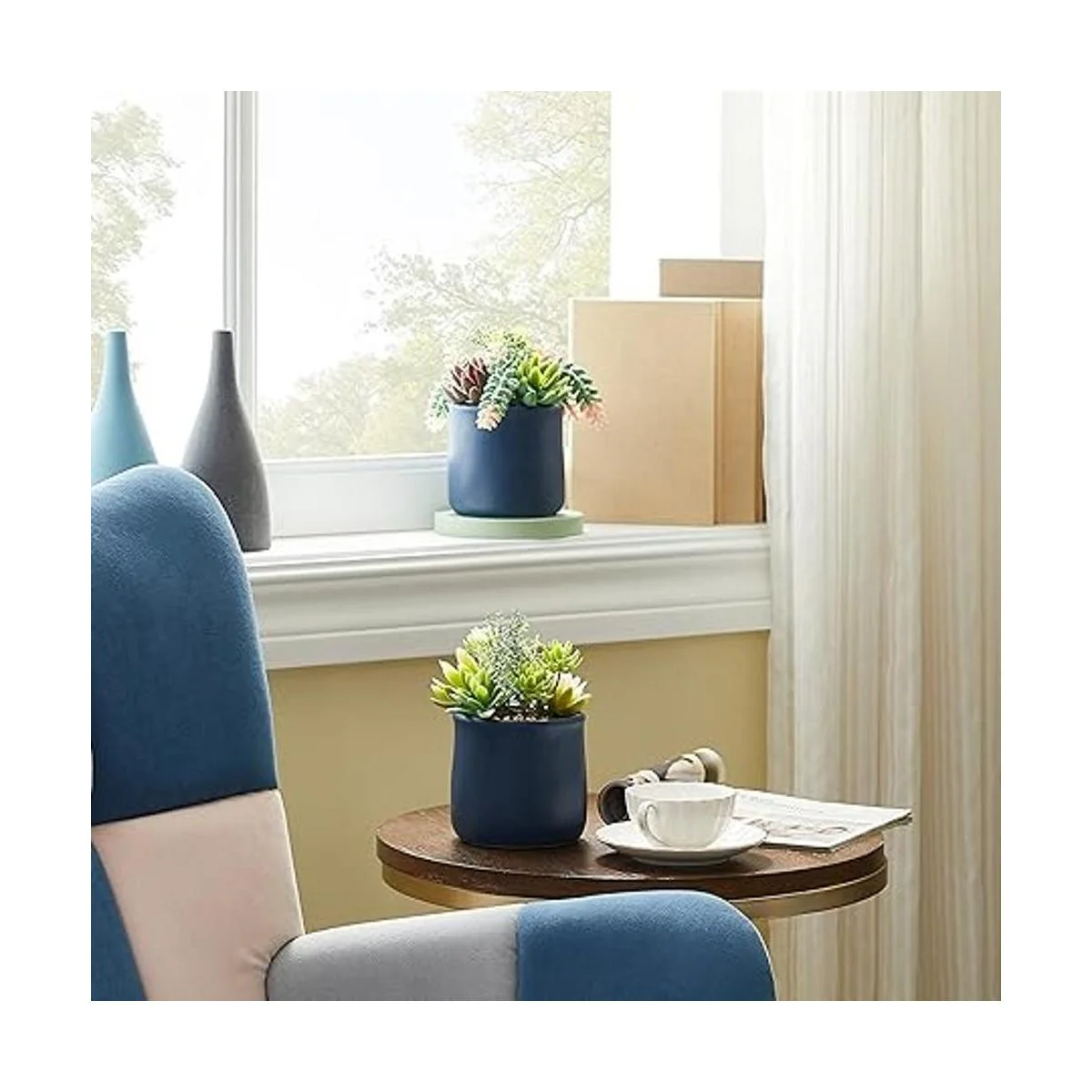 Exquisitas macetas de cerámica: las placas de cerámica suaves están hechas de cerámica de alta calidad, aportando un estilo minimalista moderno en azul océano, lo suficientemente versátil como para combinar con cualquier decoración del hogar.