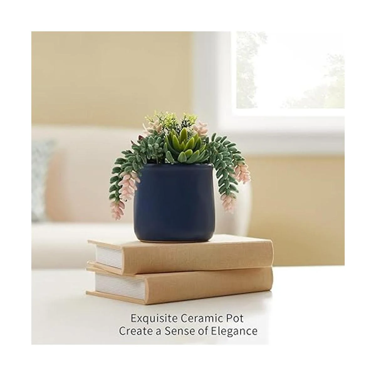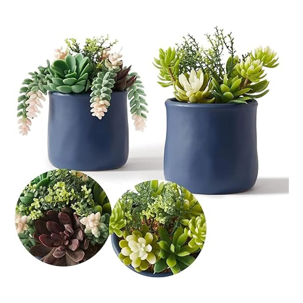 Astridia Suculentas artificiales en macetas de cerámica, paquete de 2 plantas sintéticas para escritorio, oficina, dormitorio, sala de estar, decoración del hogar