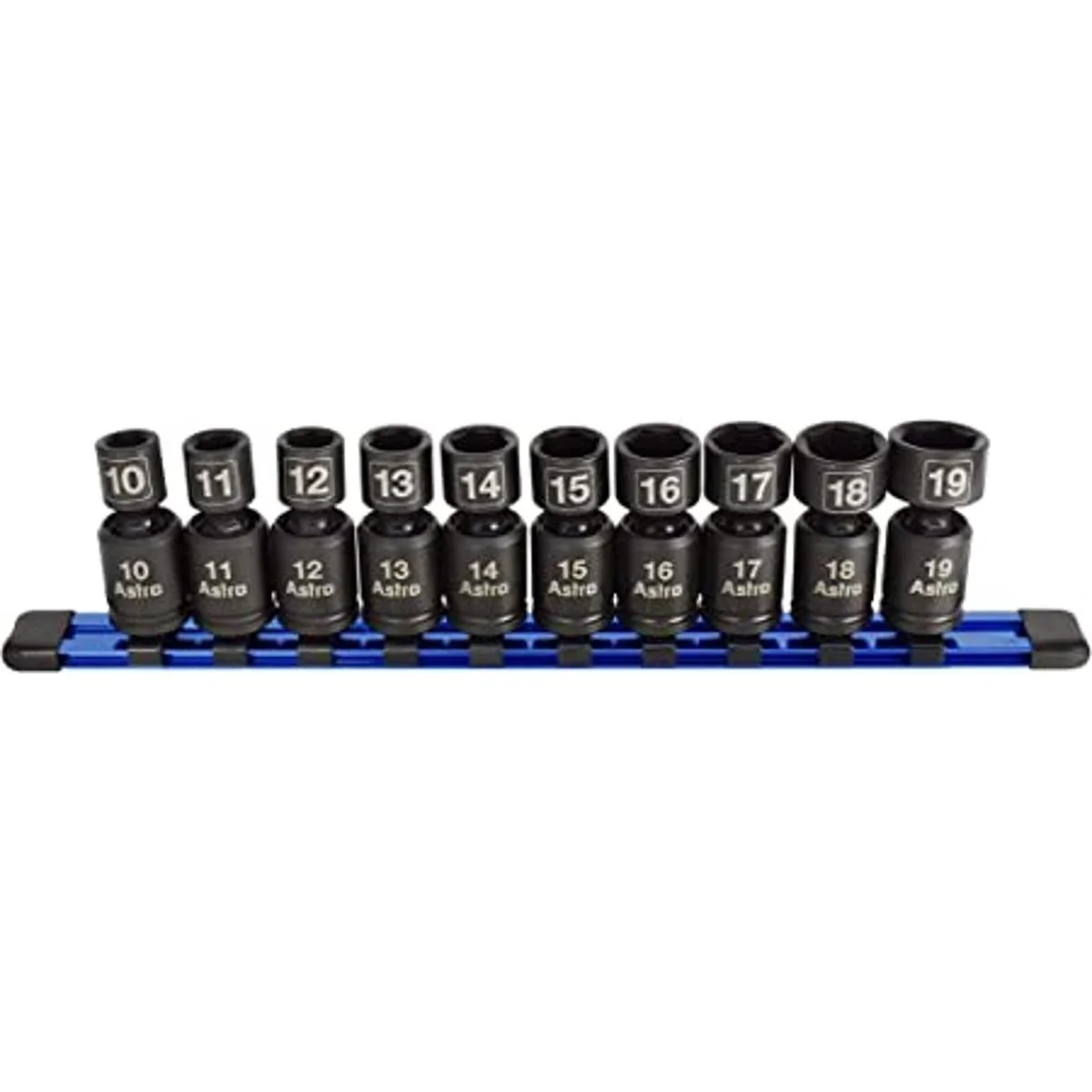 Astro Pneumatic Tool 78344 Enchufes de impacto universales sin pasadores de 10 piezas de 38 pulgadas, métrico