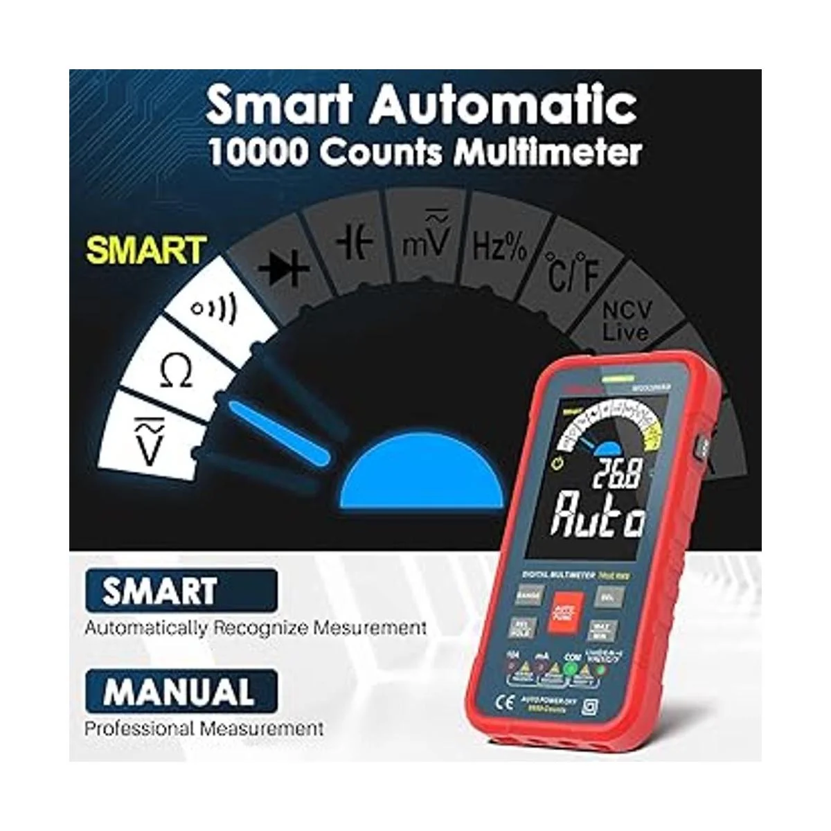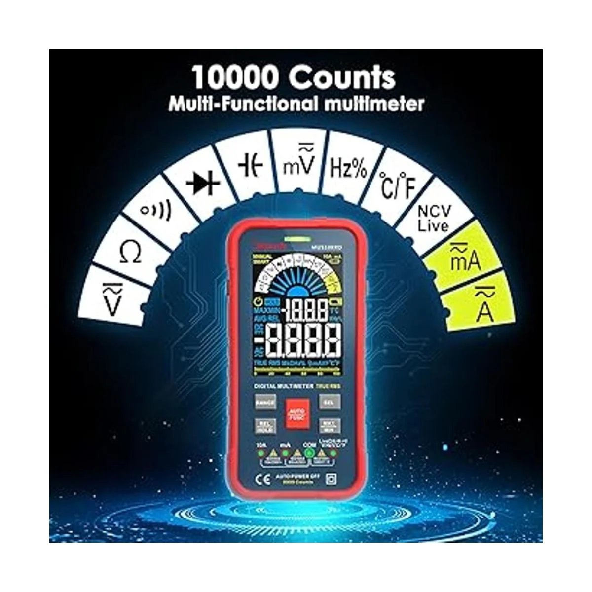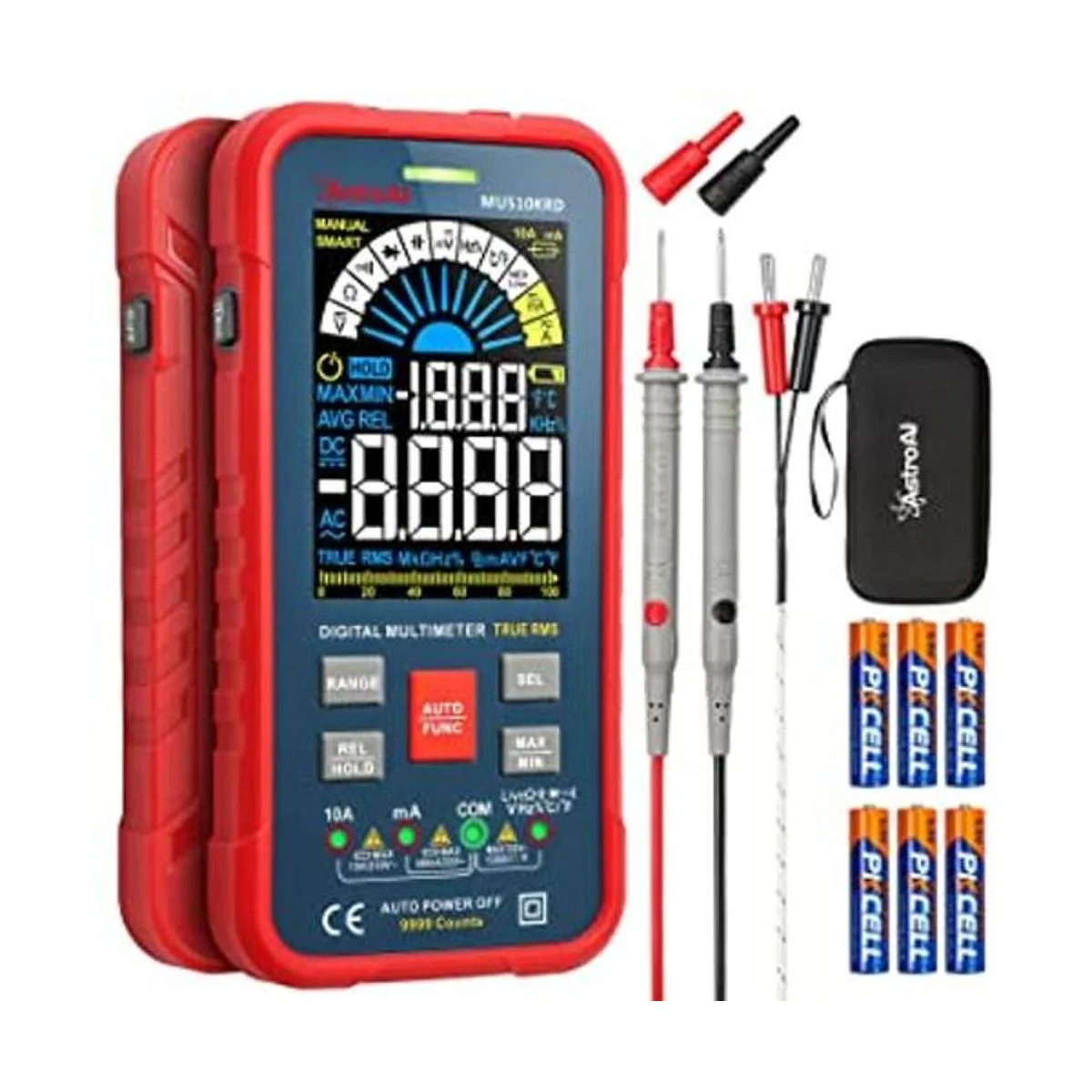 AstroAI Multímetro digital 10000 unidades TRMS Voltímetro de pantalla LCD a color de rango automático, mide rápidamente con precisión, corriente de voltaje, resistencia, continuidad, ciclo de trabajo de capacitancia