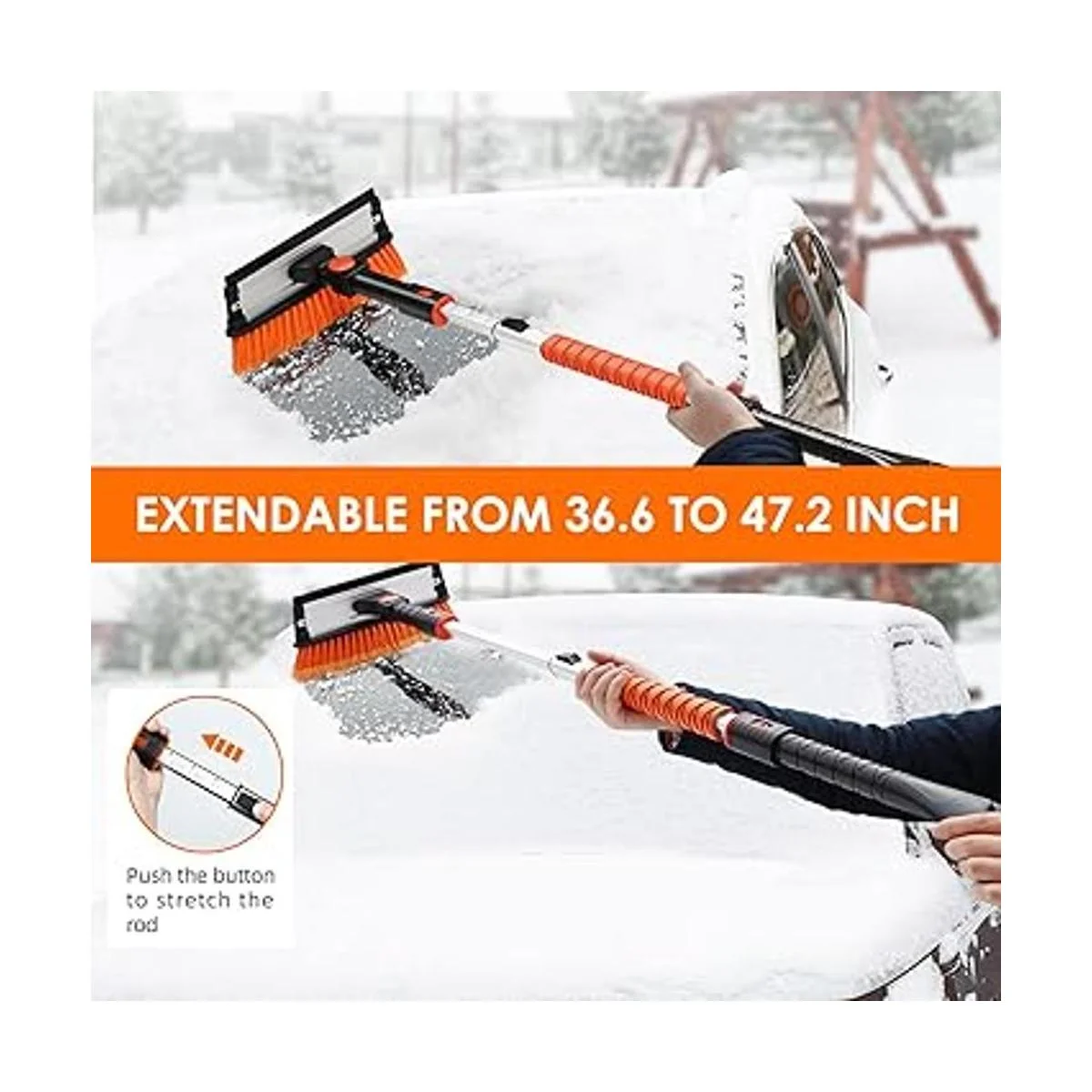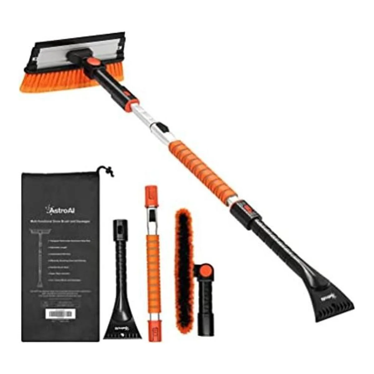 AstroAI Rasquetas de hielo de 47.2 pulgadas para parabrisas de automóvil, escobilla de nieve resistente 3 en 1 con limpiavidrios, mango de aluminio extensible, 10 ajustes de longitud, rasqueta de nieve pivotante 270 para automóvil, camión, VUD naranja