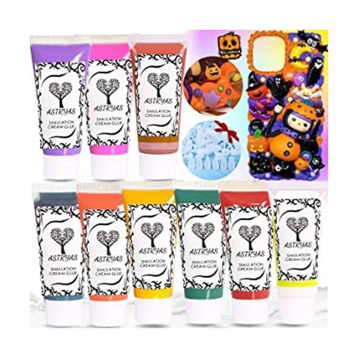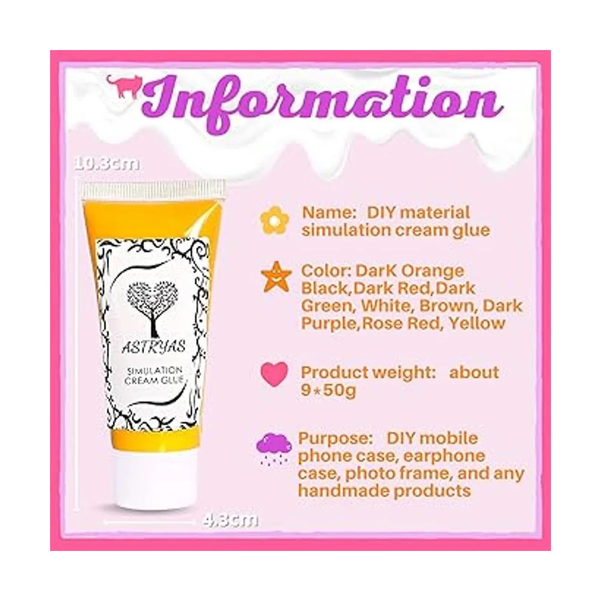 Ingredientes de alta calidad: nuestro pegamento de crema simulado está hecho de agua desionizada, emulsionante, resina a base de agua, colorante de alimentos, suelo de alimentos. No tóxico y seguro, fácil de apretar y oler dulce. Perfecto para funda de teléfono móvil, funda de auriculares, marco de fotos y cualquier producto hecho a mano