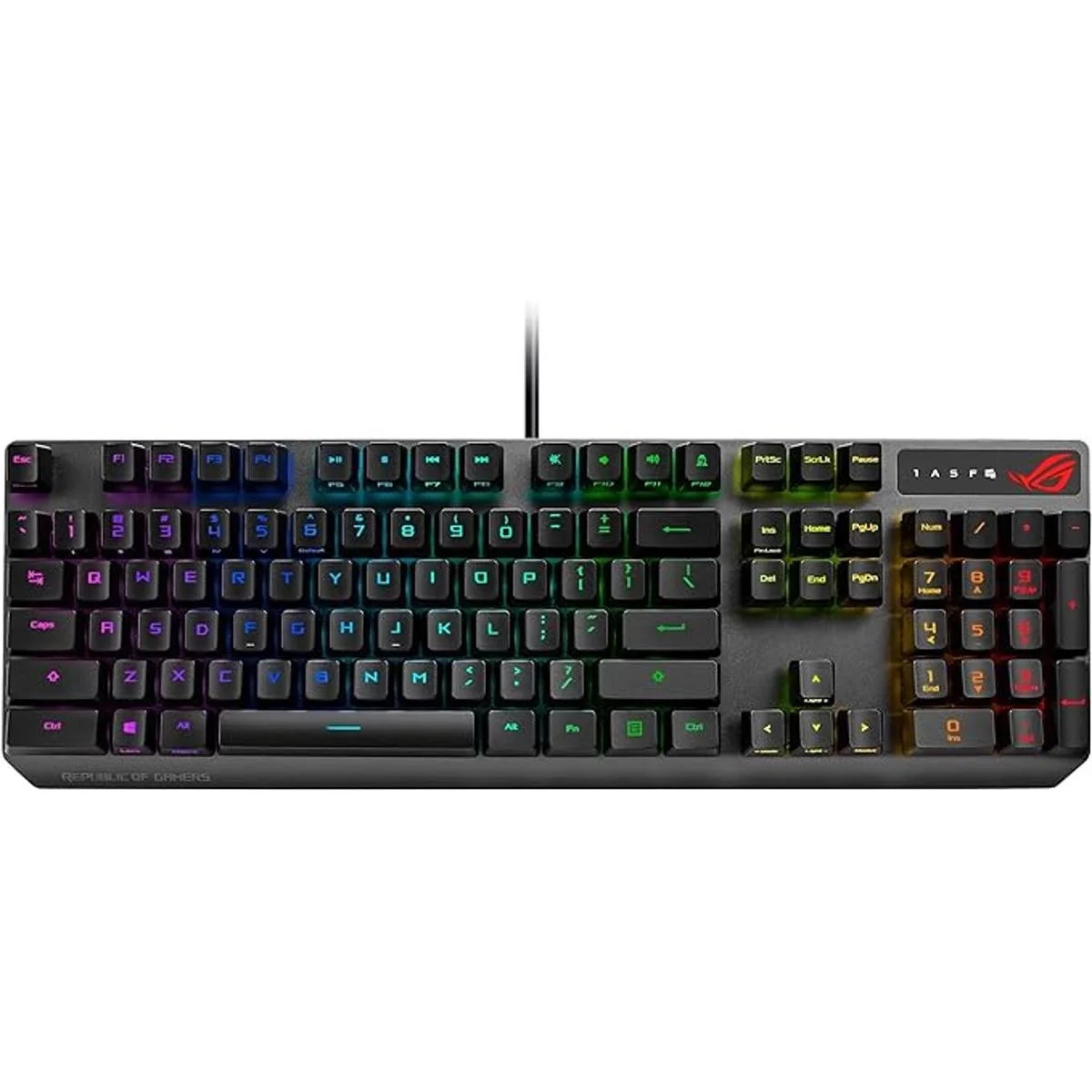 ASUS Teclado mecánico para juegos ROG Strix Scope RX Interruptores mecánicos ópticos rojos Passthrough USB 2.0 2 teclas Ctrl más anchas para una mayor precisión FPS Aura Sync, Armoury Crate RGB