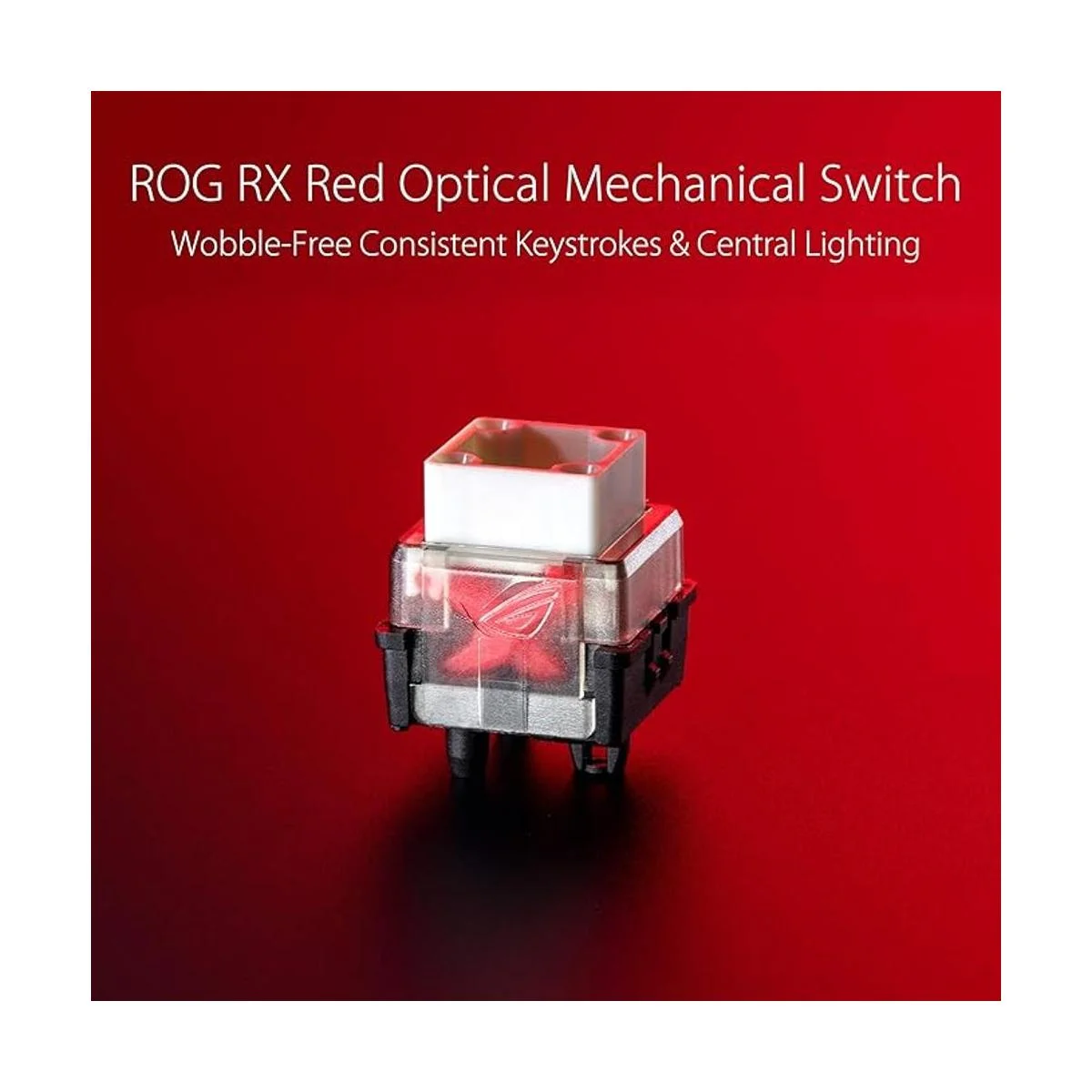 Acerca del interruptor ROG RX ROG: lineal y rápido, los interruptores mecánicos ópticos rojos ROG RX son los primeros en ser desarrollados por ROG. Una amplia investigación, pruebas y afinación han dado como resultado interruptores con un punto de accionamiento de 0.059 in para entradas rápidas. Una fuerza inicial de 1.41 oz evita pulsaciones accidentales de teclas, y va hasta 1.94 oz para una perfecta retroalimentación de rebote. Los interruptores ROG RX Red proporcionan una sensación suave y lineal para darte una respuesta casi instantánea en el momento en que golpeas la llave.