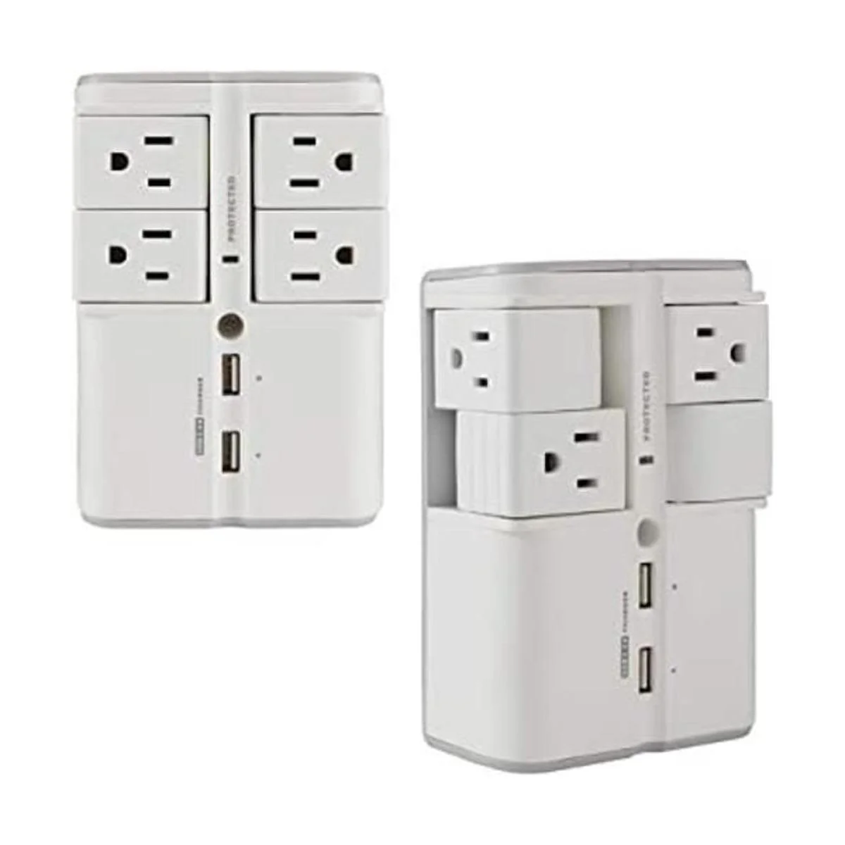 Actualiza tu toma de corriente. 4 salidas de CA giratorias y 2 puertos USB te dan más flexibilidad y facilidad de administrar más enchufes que nunca.