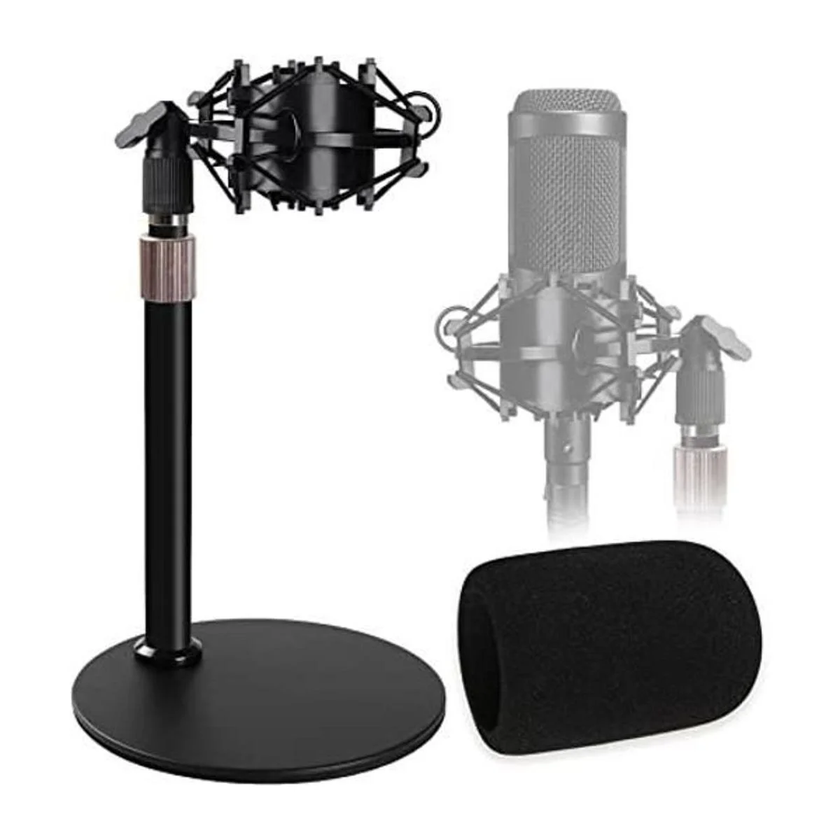 AT2020 Soporte para micrófono de escritorio con soporte de choque y parabrisas de espuma, soporte de micrófono ajustable con filtro pop para Audio Technica AT2020 AT2020USB AT2035 ATR2500 micrófono de condensador Frgyee