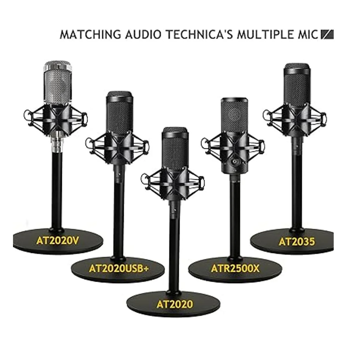 Soporte profesional para micrófono de escritorio: especialmente diseñado para Audio Technica AT2020, también apto para cualquier otro micrófono de 4,3 a 2.0 in de diámetro, como AT2020USB, AT2020USB, AT2035, ATR2500x. Bonito soporte para ahorrar espacio y estable para micrófono de condensador. Ayuda a mejorar tu calidad de sonido y liberar tus manos.